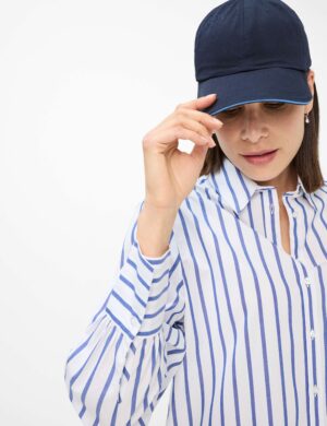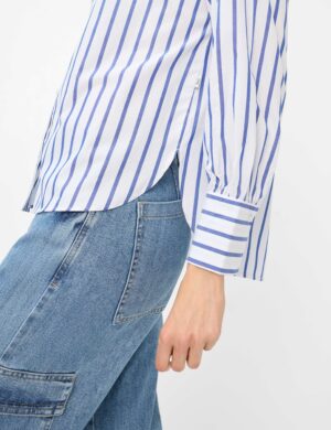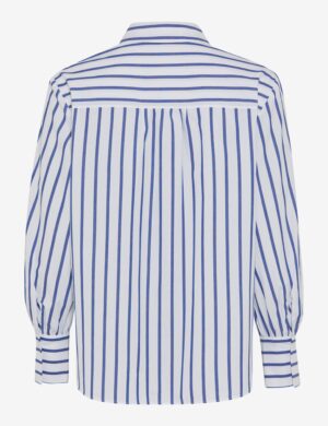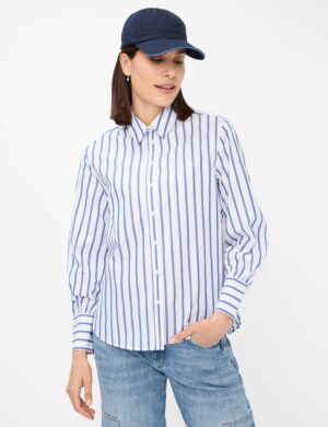 Klassische Hemdbluse mit modischem Längsstreifen und zarten Raffungen im Rückenteil.