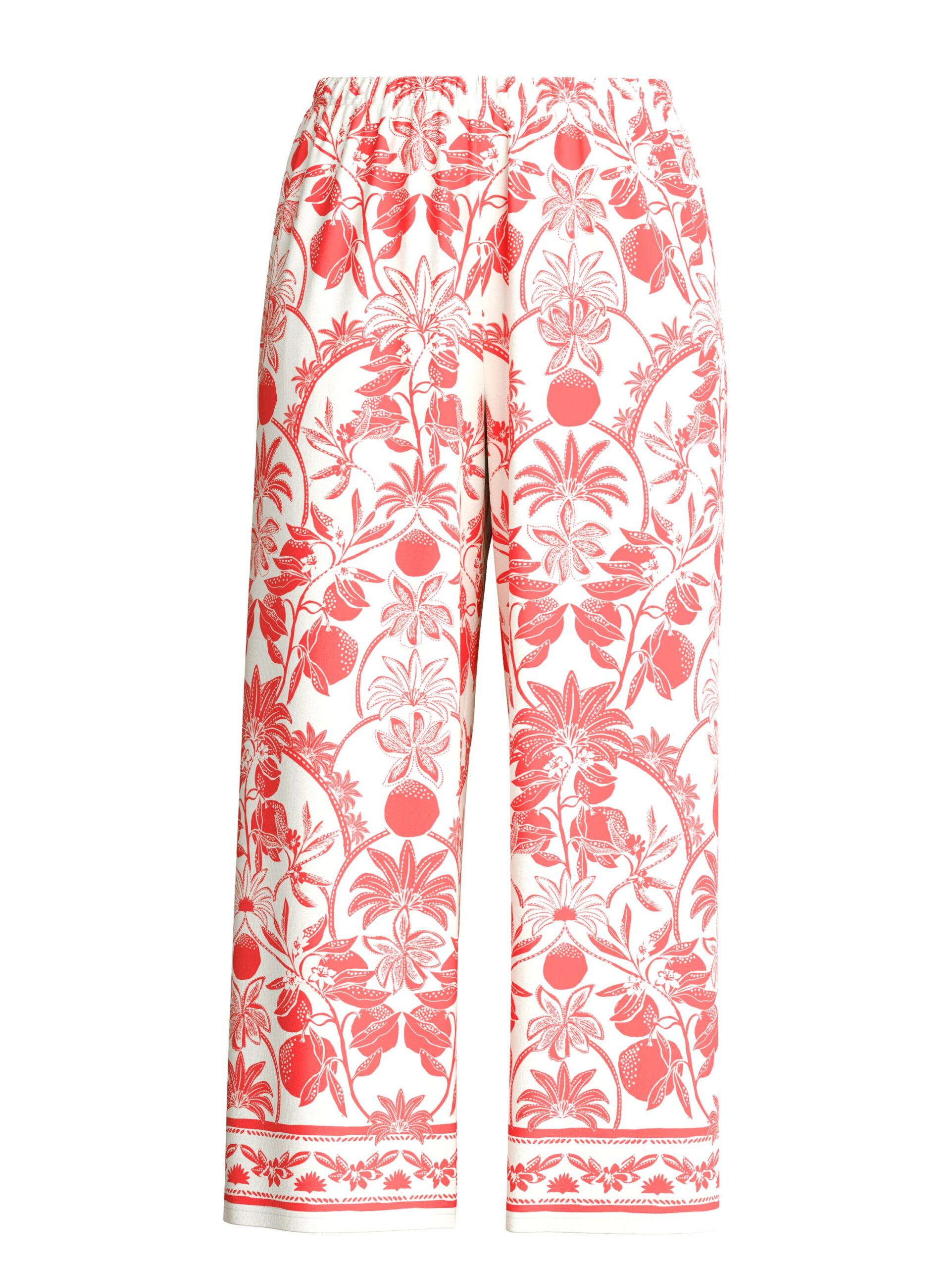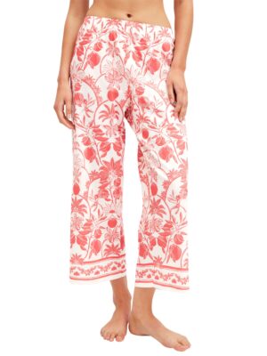 Die Damen 7/8 Hose von CALIDA besteht aus sanft fallender Interlock-Qualität und bietet eine lockere Passform. Mit mittlerer Bundhöhe, elastischem Bund und einem dezenten floralen Allover-Print mit Bordürendesign ist sie ideal für entspannte Stunden zu Hause und die Nacht.