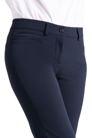 Die CAMBIO Hose Renira besticht durch ihre schmale Passform und das schmal zulaufende Bein. Der normale Bund schließt mit einem Knopf und Reißverschluss.