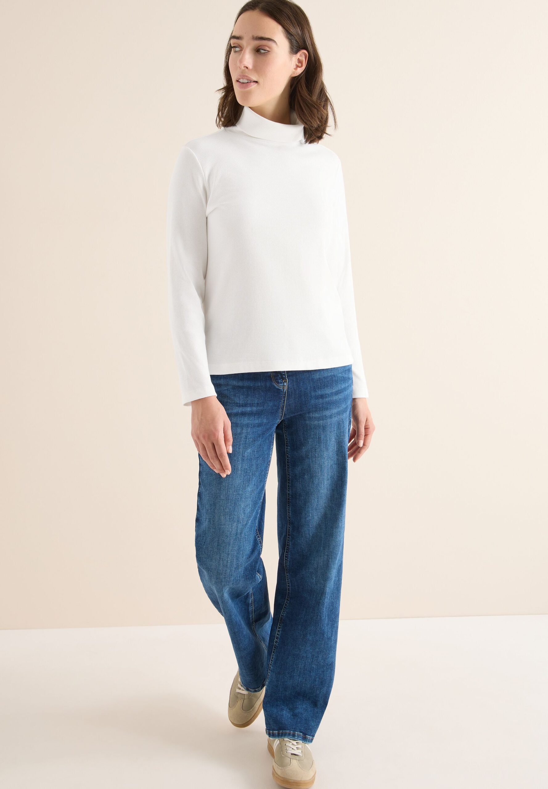 Das Turtle Neck Rib Shirt von CECIL ist ein vielseitig kombinierbares Damenoberteil mit lässigem Schnitt. Es bietet einen hohen Tragekomfort und ist aus hochwertigen Materialien gefertigt.