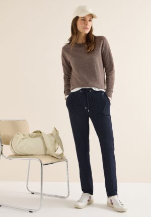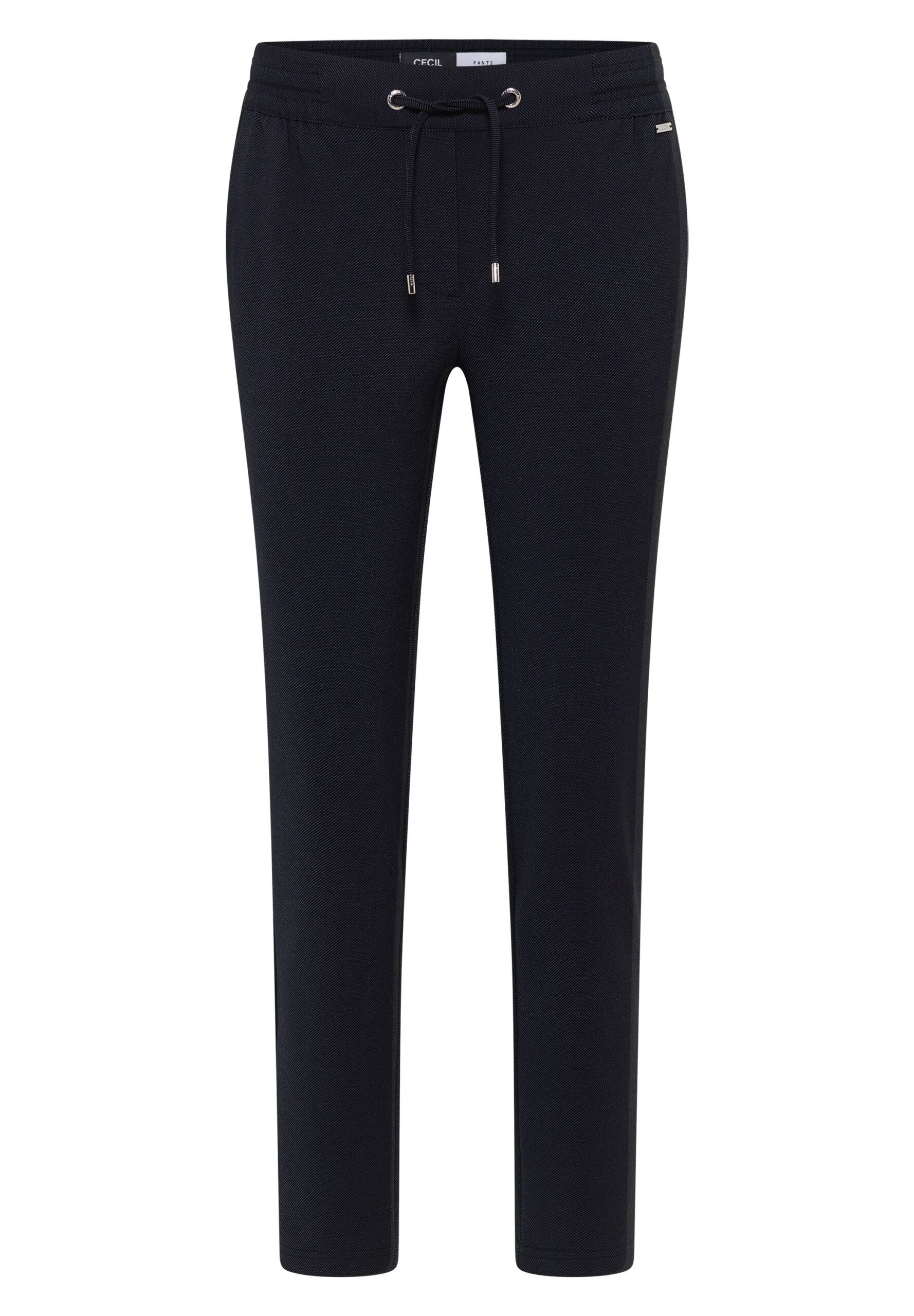 Die Hose im Style Tracey von CECIL für Damen bringt mit Two-Tone Look, Mid Waist und Slim Legs frischen Wind in deinen Kleiderschrank. Der elastische Bund mit Tunnelzug sorgt für angenehmen Sitz – perfekt für lässige Outfits mit Stil. Casual Fit Hose. Mid Waist und Slim Legs. Seitliche Taschen. Materialmix mit Stretchanteil.