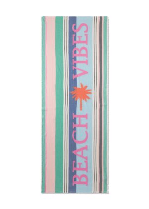 Der Codello Schal ist ein modisches Accessoire aus hochwertiger Baumwollmischung mit einem ansprechenden Streifenmuster und dem Schriftzug ‚BEACH VIBES‘. Ideal für kühle Tage und vielseitig kombinierbar.
