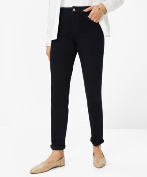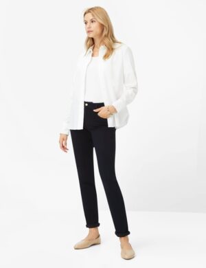 Die Brax Style Shakira Damenjeans mit super Stretch Denim formt und betont die Figur, ist besonders bequem und trendig. Dank der guten Rücksprungswerte behält die Skinny-Jeans auch bei hoher Beanspruchung ihre Form. Kleine Saumschlitze an der Seitennaht und eine innovative Taschenlösung verleihen der verkürzten Röhrenjeans eine besondere Raffinesse.