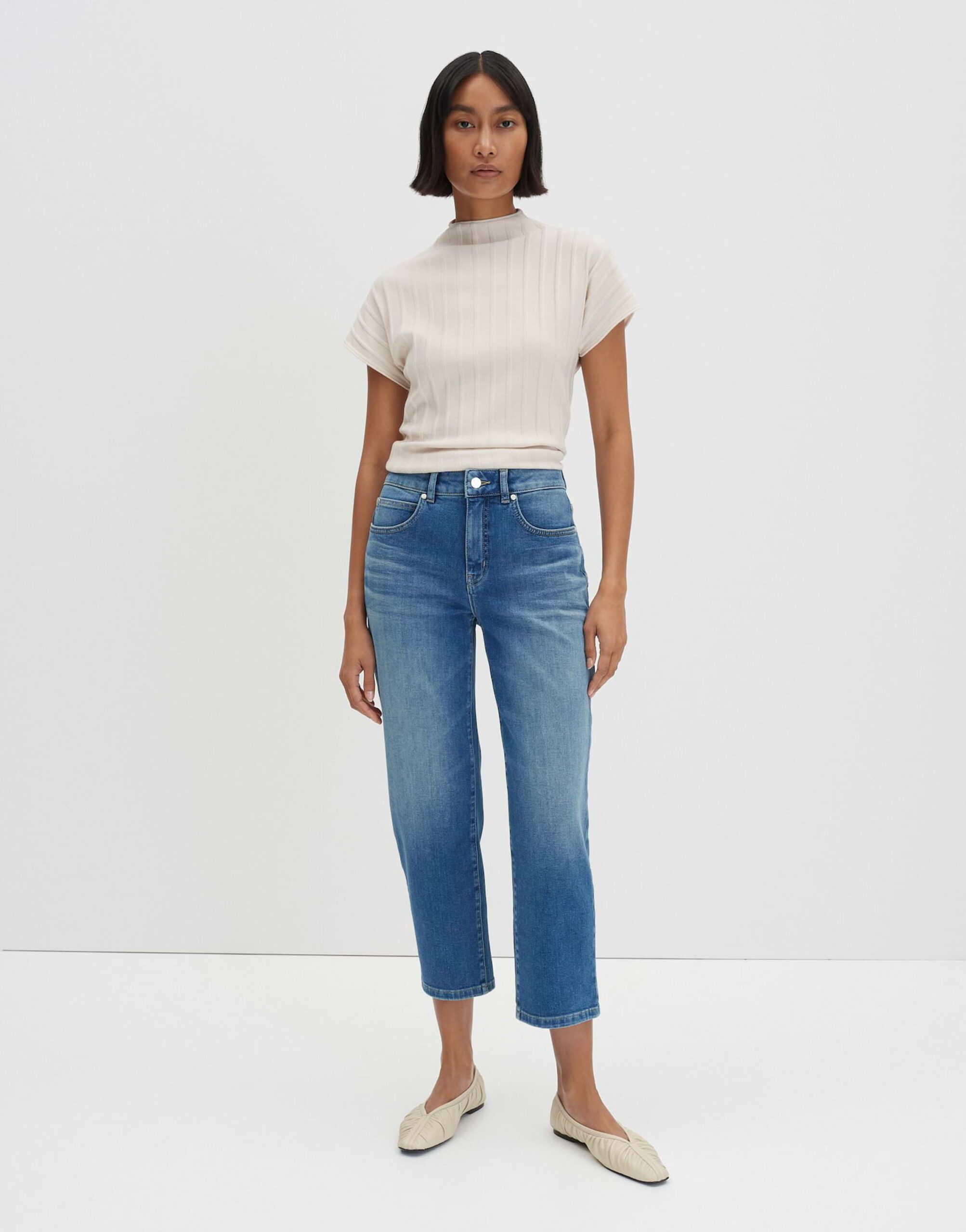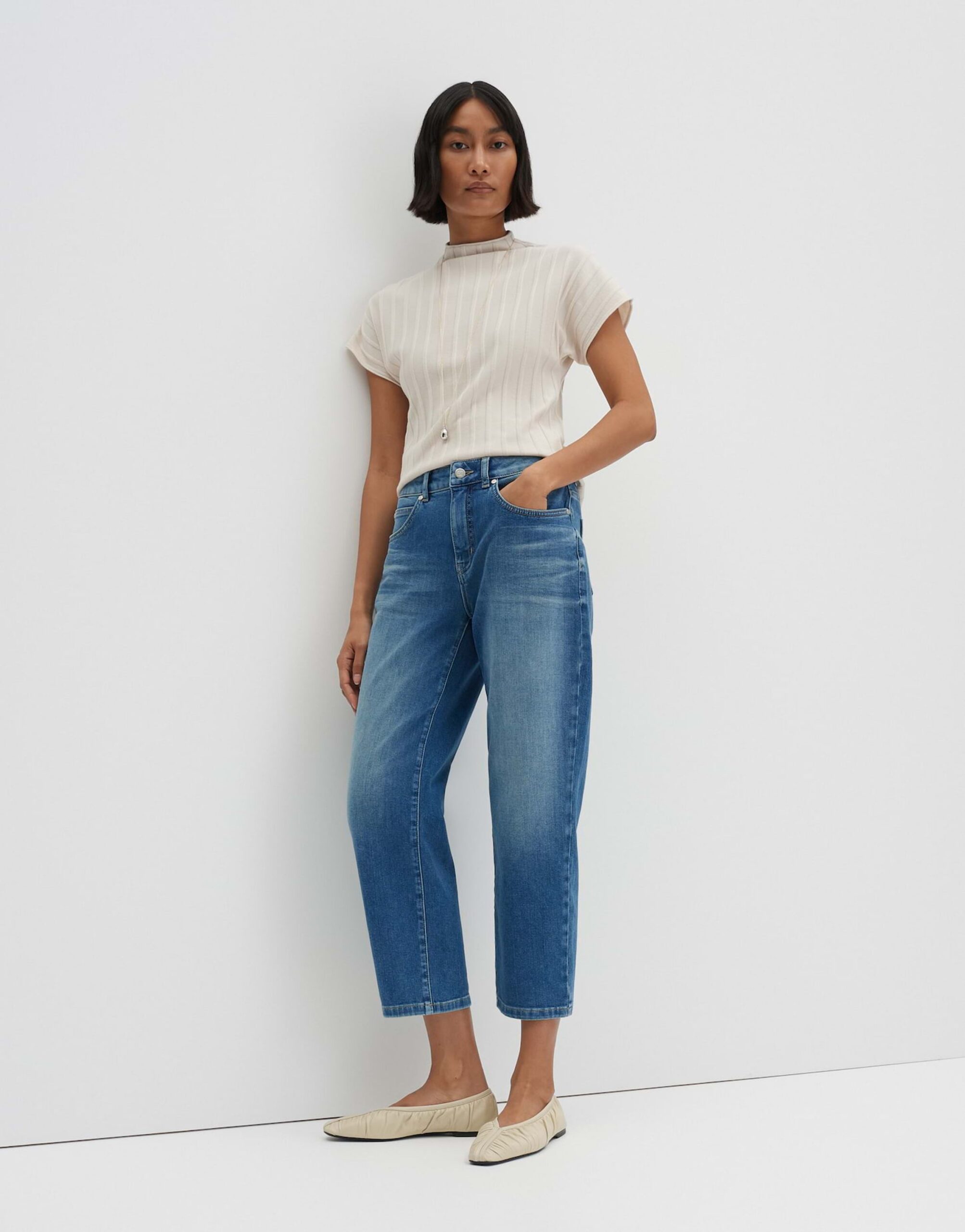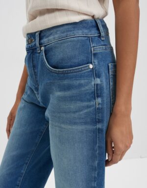Locker am Oberschenkel geschnitten und schmal zulaufendes Bein, die Hosenbein Innenlänge beträgt ca. 66 cm in jeder Größe. Das Model ist 176 cm groß und trägt Größe 36. Die Denim-Hose hat einen weichen Griff und besteht aus elastischem Stoff. Sie verfügt über ein 5-Pocket-Design, einen verdeckten Zip-Fly, Gürtelschlaufen, Crinkle-Effekte und leichte Used-Effekte.