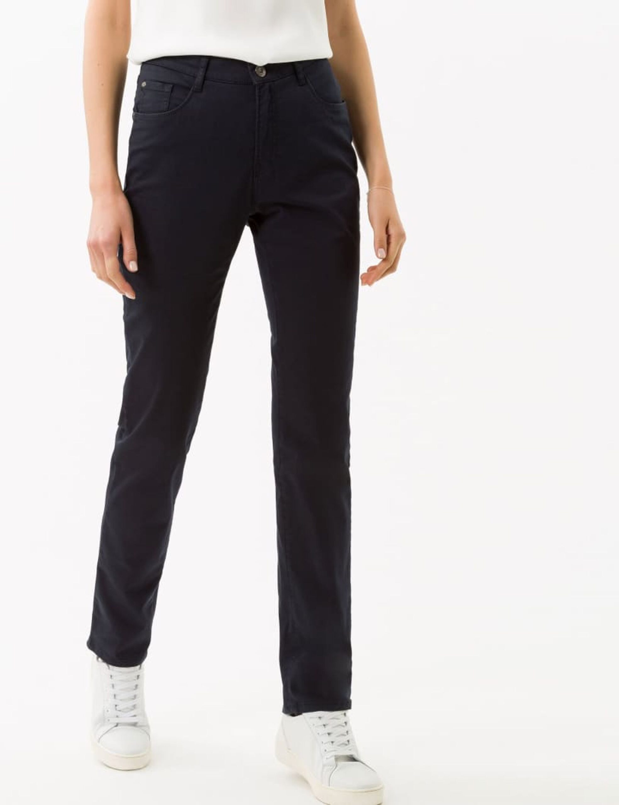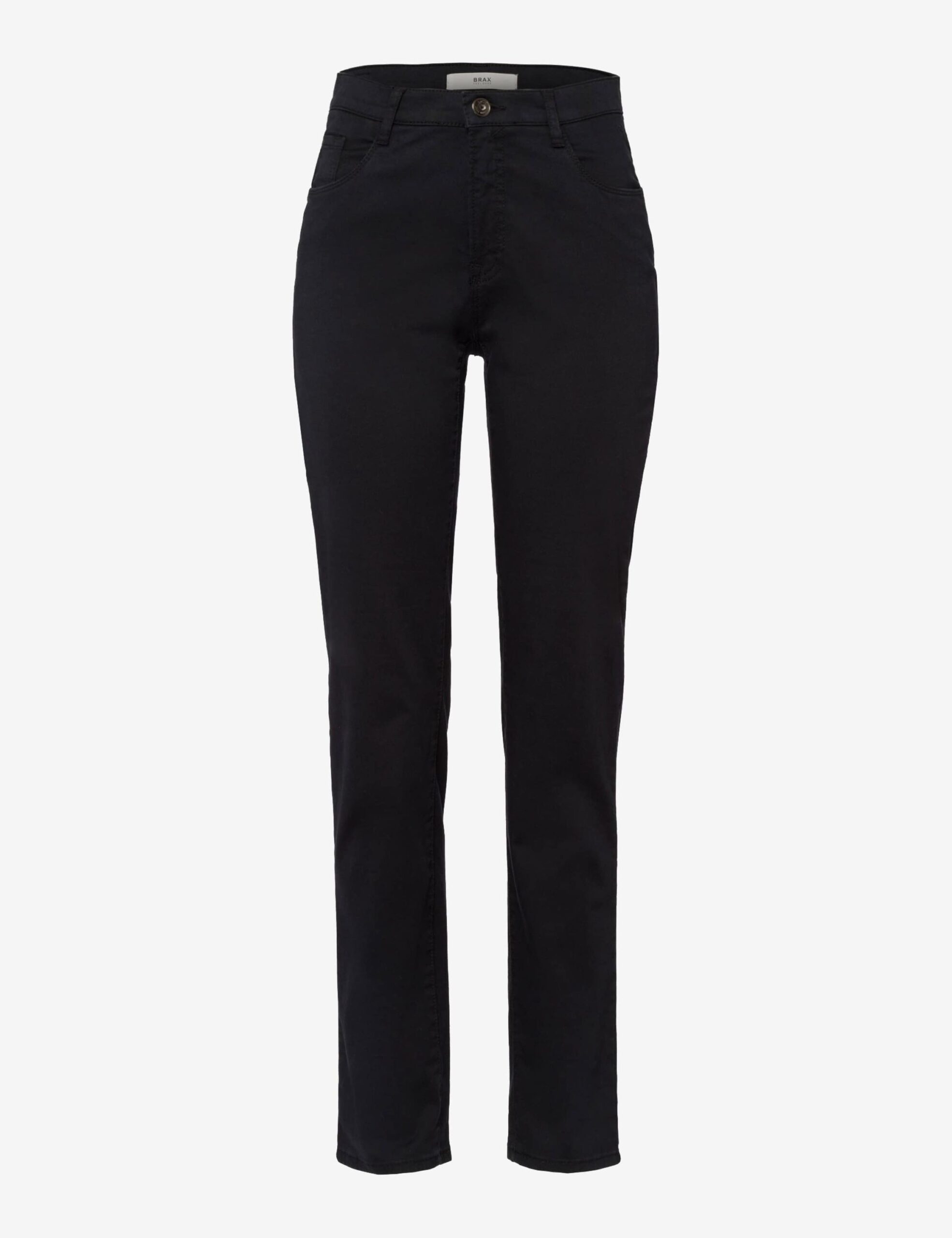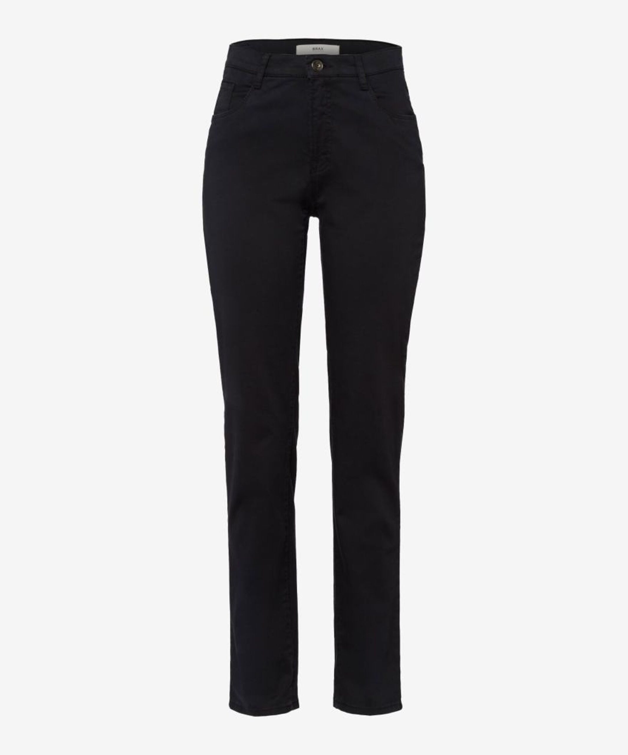 Mit eleganter Note. Diese Damenhose überzeugt in einem supersoften Baumwoll-Satin und gibt der klassisch-sportiven Five-Pocket-Hose einen eleganten Touch. Der feine Baumwollstretch ist komfortabel, verfügt über eine tolle Farbbrillanz und einen überaus soften Griff. Die feminine Seite kommt bei der Damenhose über dekorative Strasssteinfähnchen.