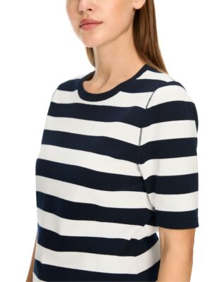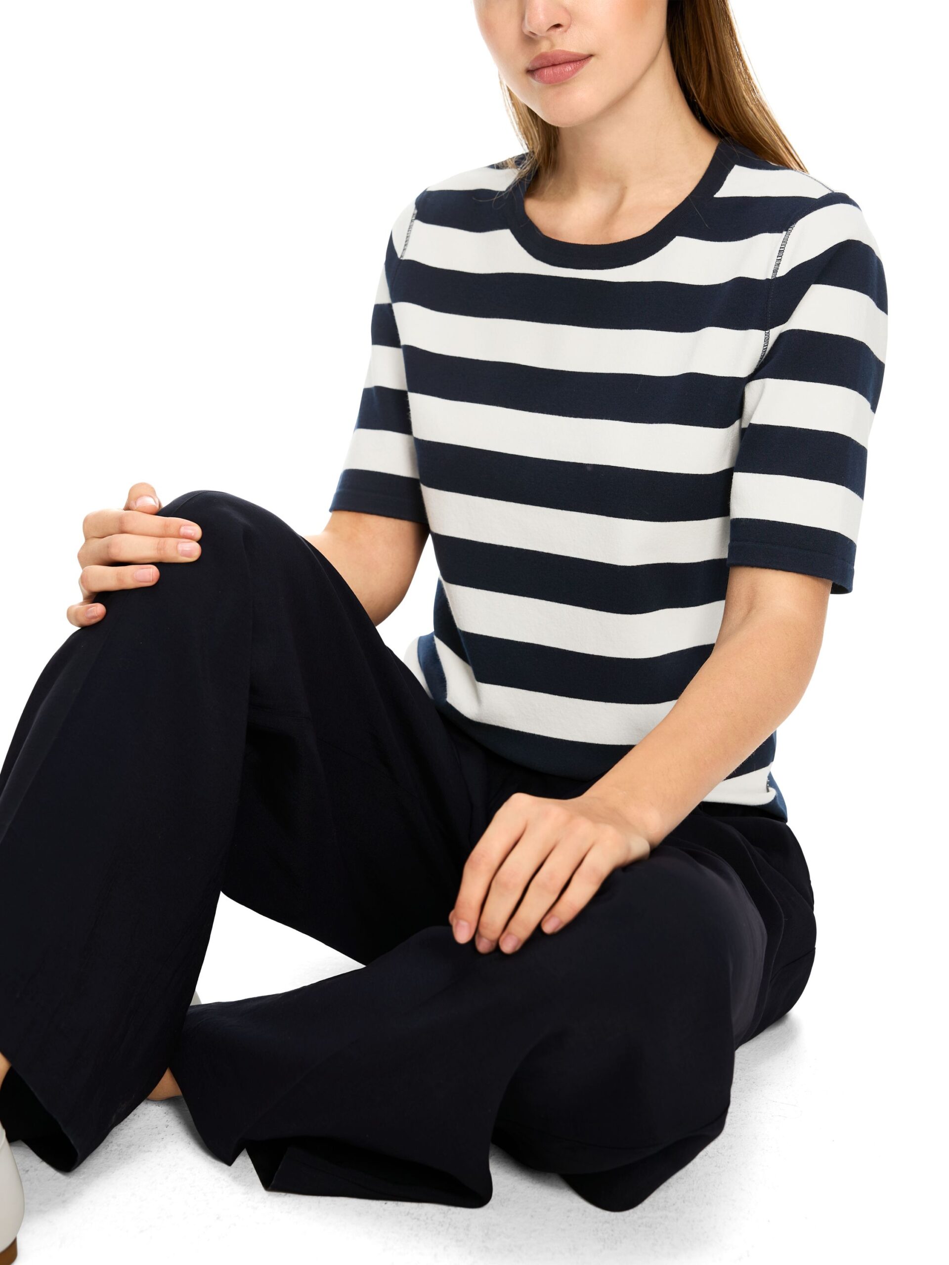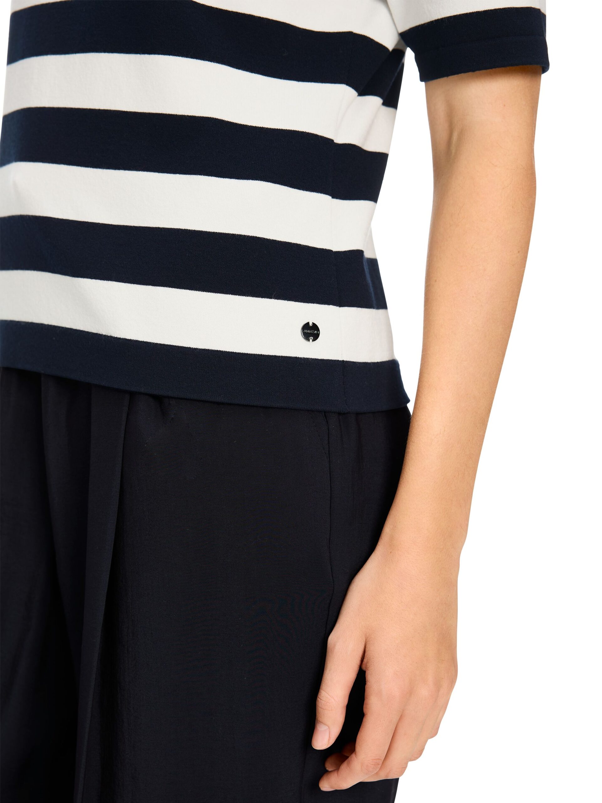 Pullover aus weichfließendem Feinstrick. Die Form ist körpernah und die Säume sind offen. Der Rundhals ist mit einem feinen Ripp-Bündchen eingefasst. Das Modell wird nach ökosozialen Kriterien produziert und trägt das Nachhaltigkeitslabel ‚Rethink Together‘. Zudem wird es mit modernsten Technologien in Deutschland gestrickt und veredelt. Die einzelnen Teile – wie Rücken- und Vorderteil etc. – werden in europäischen Partnerbetrieben zusammengenäht. Körpernah. Knitted in Germany/Rethink Together. Kurzarm. Rundhals. Das Model ist 179 cm groß und trägt N3/38.