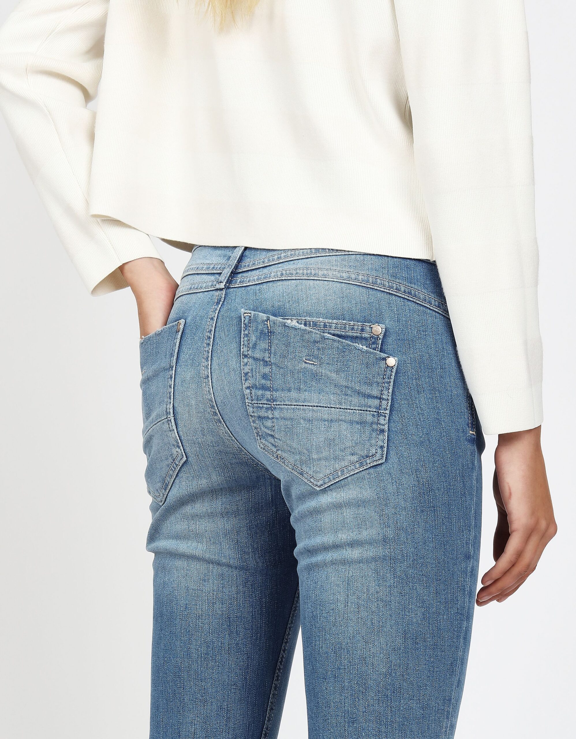 Die 94AMELIE von GANG ist eine relaxte 5-Pocket Jeans mit mehr Oberschenkelweite für zusätzlichen Tragekomfort. Sie kann lässig auf der Hüfte oder eng getragen werden und zeichnet sich durch eine doppelte Passe und eine doppelte Gesäßtasche aus.