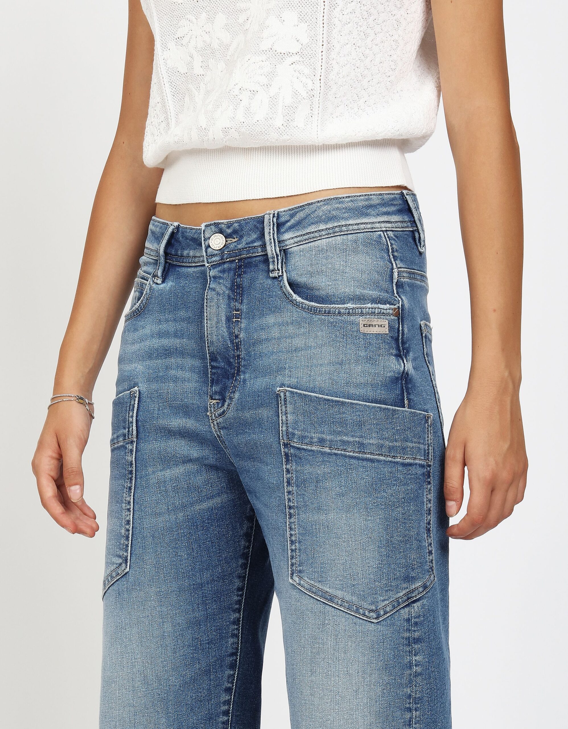 Das Modell 94IDA WORKER präsentiert sich mit einem lässigen verkürzten O-Shape und seitlichen Worker Taschen. Die Abnäher am Saum unterstreichen den Worker Look. Die Gang Jeans sind bekannt für ihren modernen Schnitt und hohe Qualität. Sie bieten bequemen Tragekomfort und sind vielseitig kombinierbar.