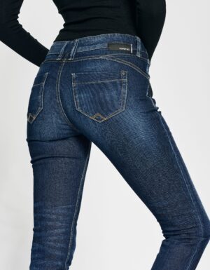 Die 94NIKITA Skinny Fit Jeans von GANG formt einen schönen Po dank der Rundpasse und leicht gerundeten Gesäßtaschen. Ein besonderes Detail ist die Coinpocket mit Zipper sowie die V-förmigen Einsätze an den Taschen.