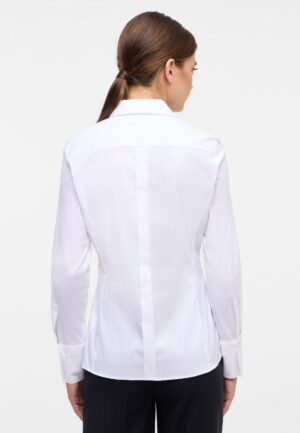 Komplettiert Ihr Outfit und darf in keiner Garderobe fehlen: Unser bügelleichtes, unifarbenes SIGNATURE SHIRT, aus unserer Premiumlinie 1863 by ETERNA, ist fein, leicht, straight und der ideale Kombinationspartner für einen cleanen, anspruchsvollen Look. Das edel schimmernde Popeline-Gewebe, aus 79% Baumwolle, 18% Polyamid und 3% Elasthan, hat eine elegante Stoffstruktur und ist Dank des feinen Garns besonders angenehm zu tragen. Diese FITTED Hemdbluse ist besonders figurbetont. Ihr taillierter Schnitt bringt eine schmale Silhouette perfekt zur Geltung. Die superschlanke Silhouette wird durch Abnäher vorne und hinten erreicht. Der Hemdkragen und die verdeckte Knopfleiste, runden das Erscheinungsbild der Bluse (Rückenlänge 65 cm) gelungen ab. Bestellen Sie dieses zeitlos moderne Bluse jetzt bequem online.