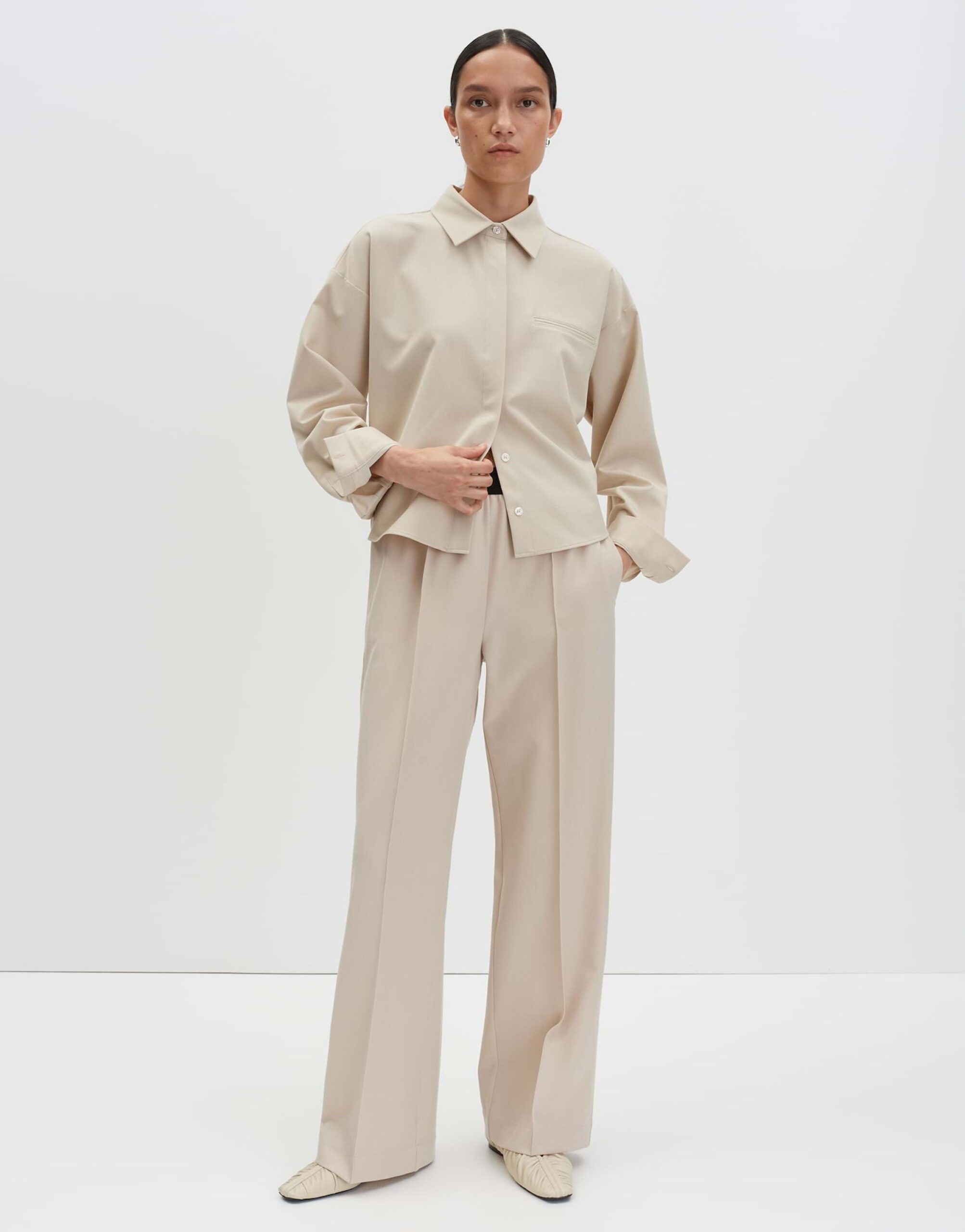 Die Hose „Cevil decoded“ von SOMEDAY überzeugt mit einem weiteren, geraden Beinverlauf und einer Hosenbein Innenlänge von ca. 78 cm in jeder Größe. Das Webmaterial mit dezenter Twillstruktur und glattem Griff verleiht der Hose einen matten Glanz. Praktische Nahttaschen in der Seitennaht, Zier-Paspeltaschen hinten, abgesteppte Biese vorne und ein bequemer Gummibund in der Taille machen die Hose zum perfekten Begleiter.