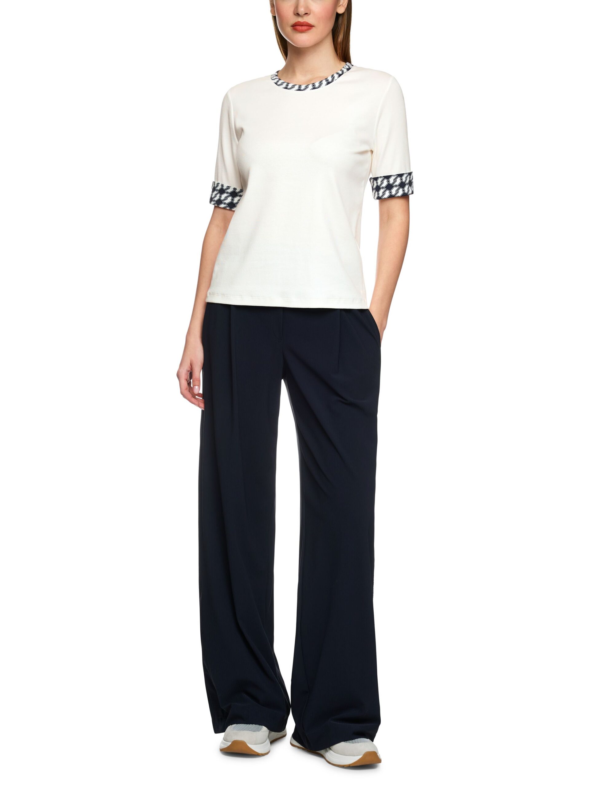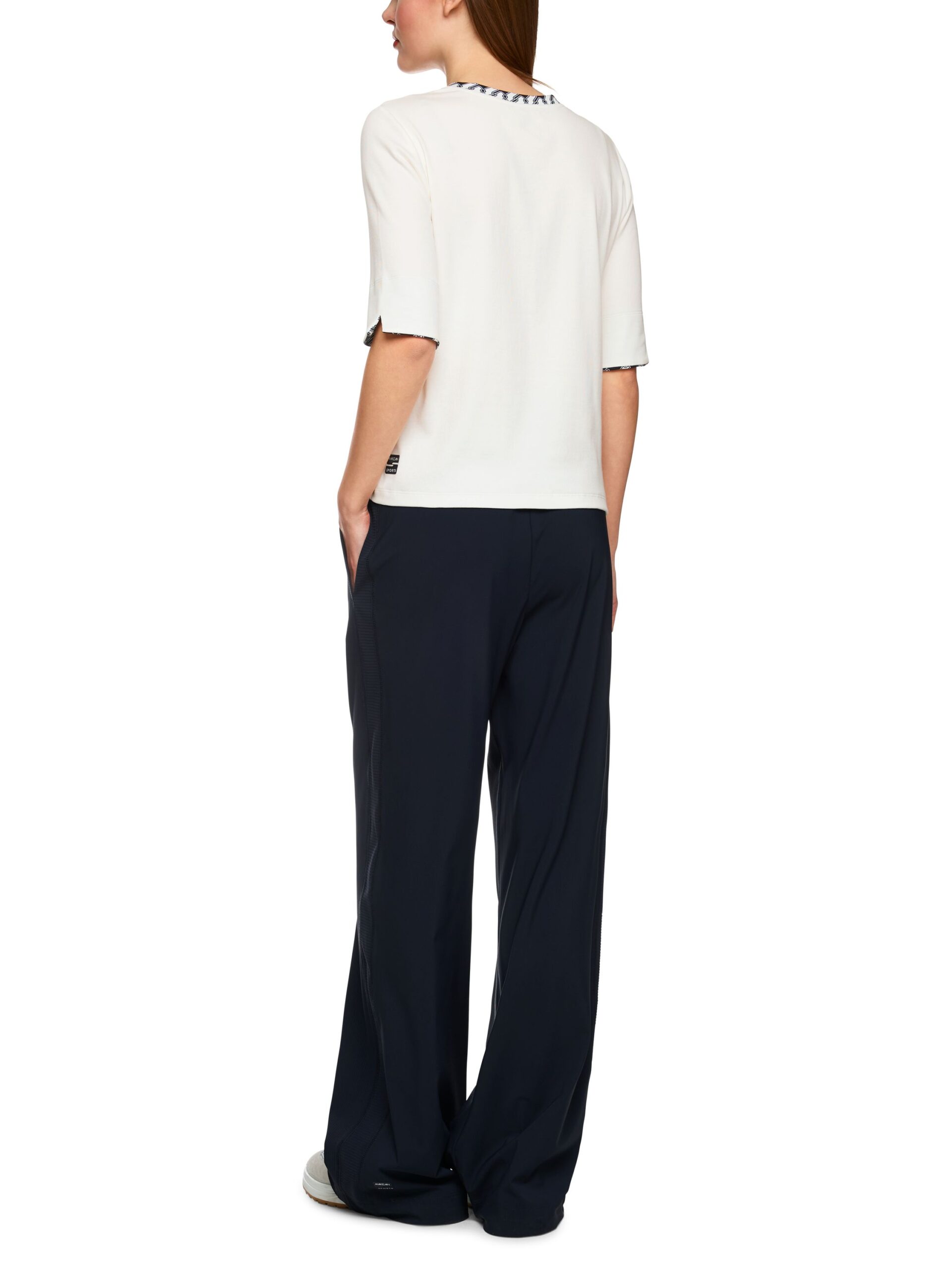 Das Jersey-Shirt präsentiert sich mit Cube-Print-Details am Ausschnitt und an den geschlitzten Ärmeln, wenn sie lässig umgekrempelt werden. Durch das bequeme Baumwollstretch-Material ergibt sich ein perfekter Tragekomfort. Das Shirt hat halblange Ärmel, einen runden Halsausschnitt und ist leger geschnitten. Das Model ist 179 cm groß und trägt N3/38.