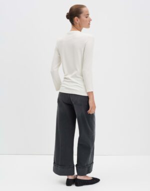 Das schmale Langarmshirt Kaleen von SOMEDAY ist figurbetont geschnitten und überzeugt mit einem Rundhalsausschnitt. Die Rückenlänge beträgt ca. 59 cm bei Größe 36. Das Modell ist 176 cm groß und trägt Größe 36. Der weiche Griff und der elastische Stoff sorgen für angenehmen Tragekomfort.
