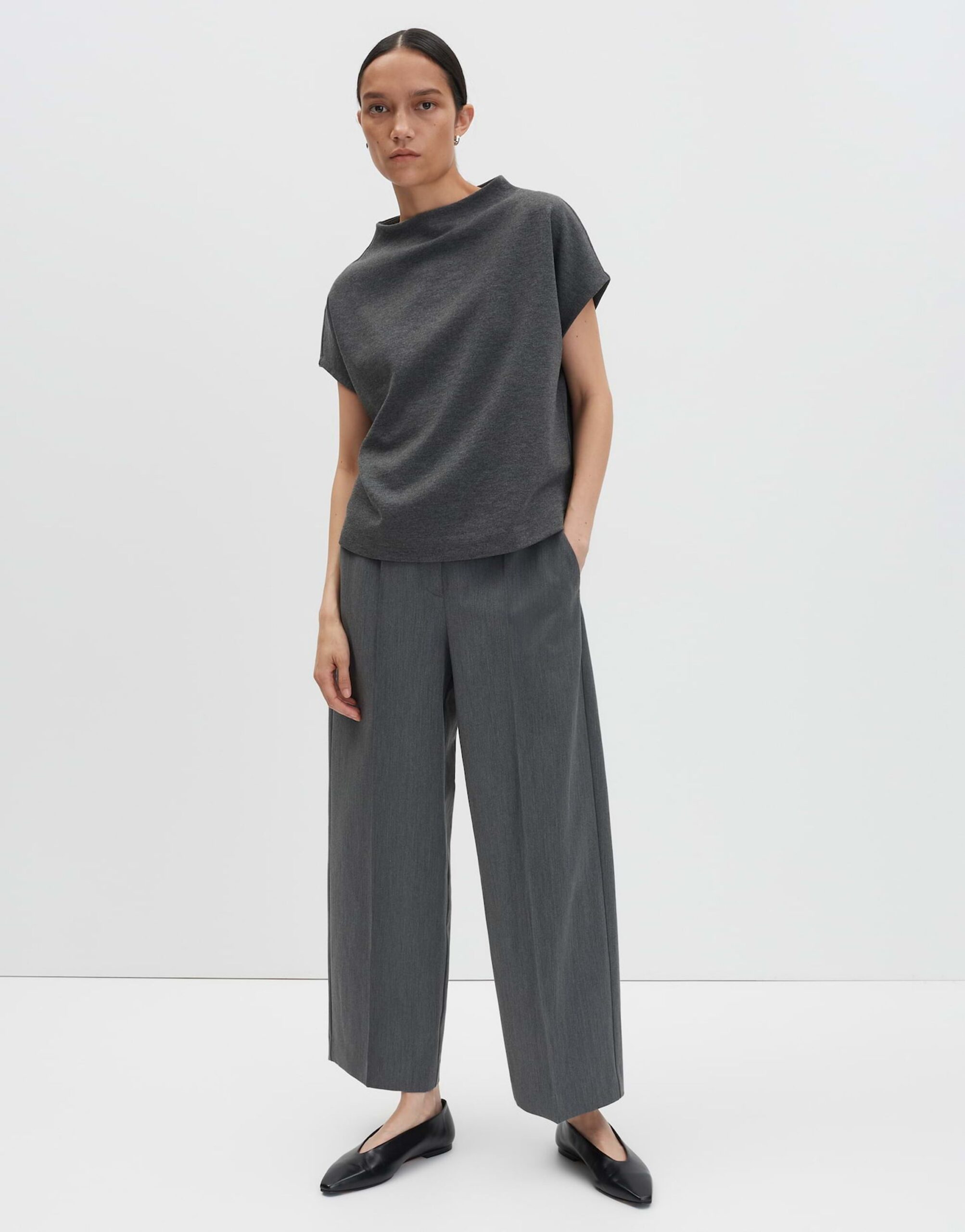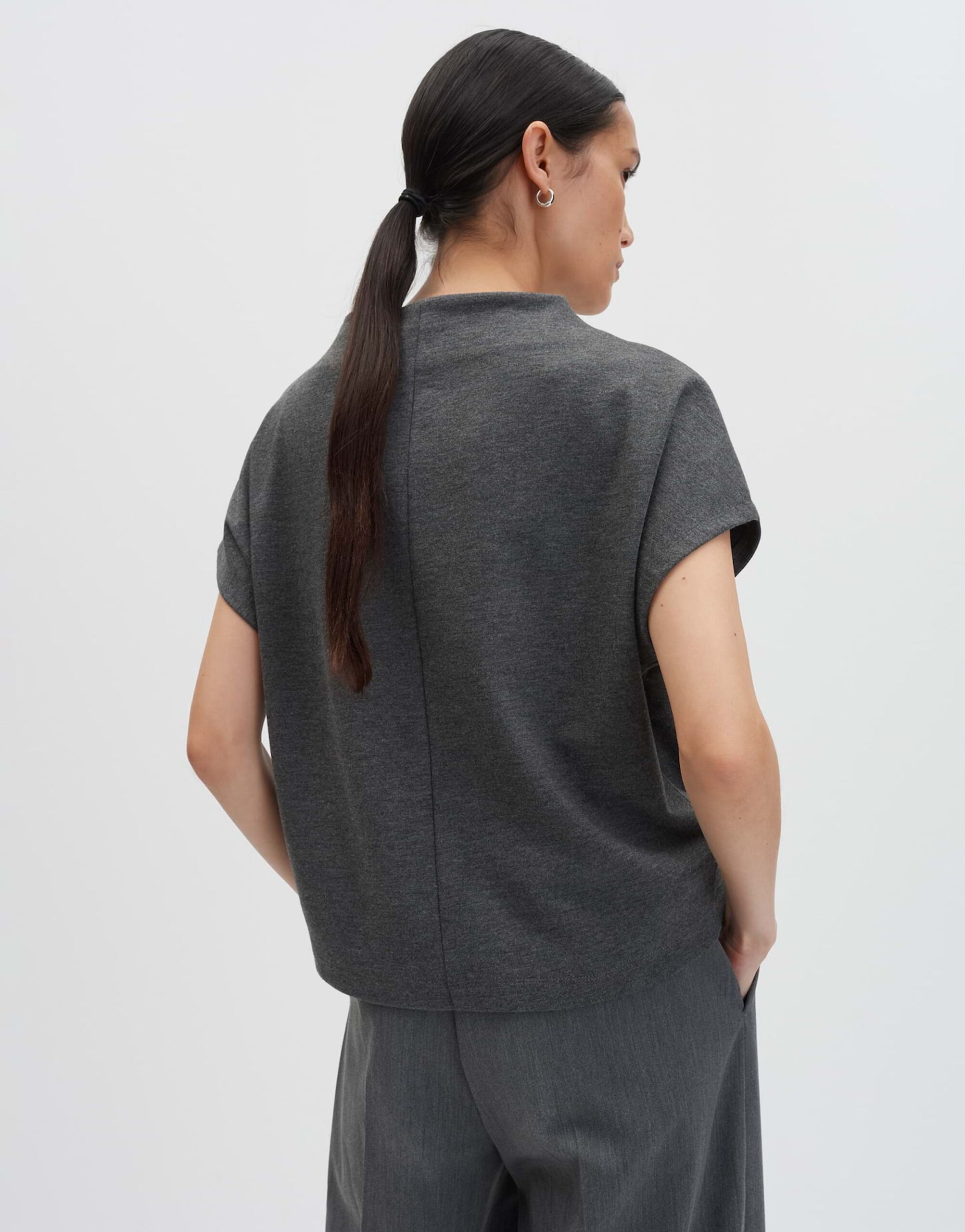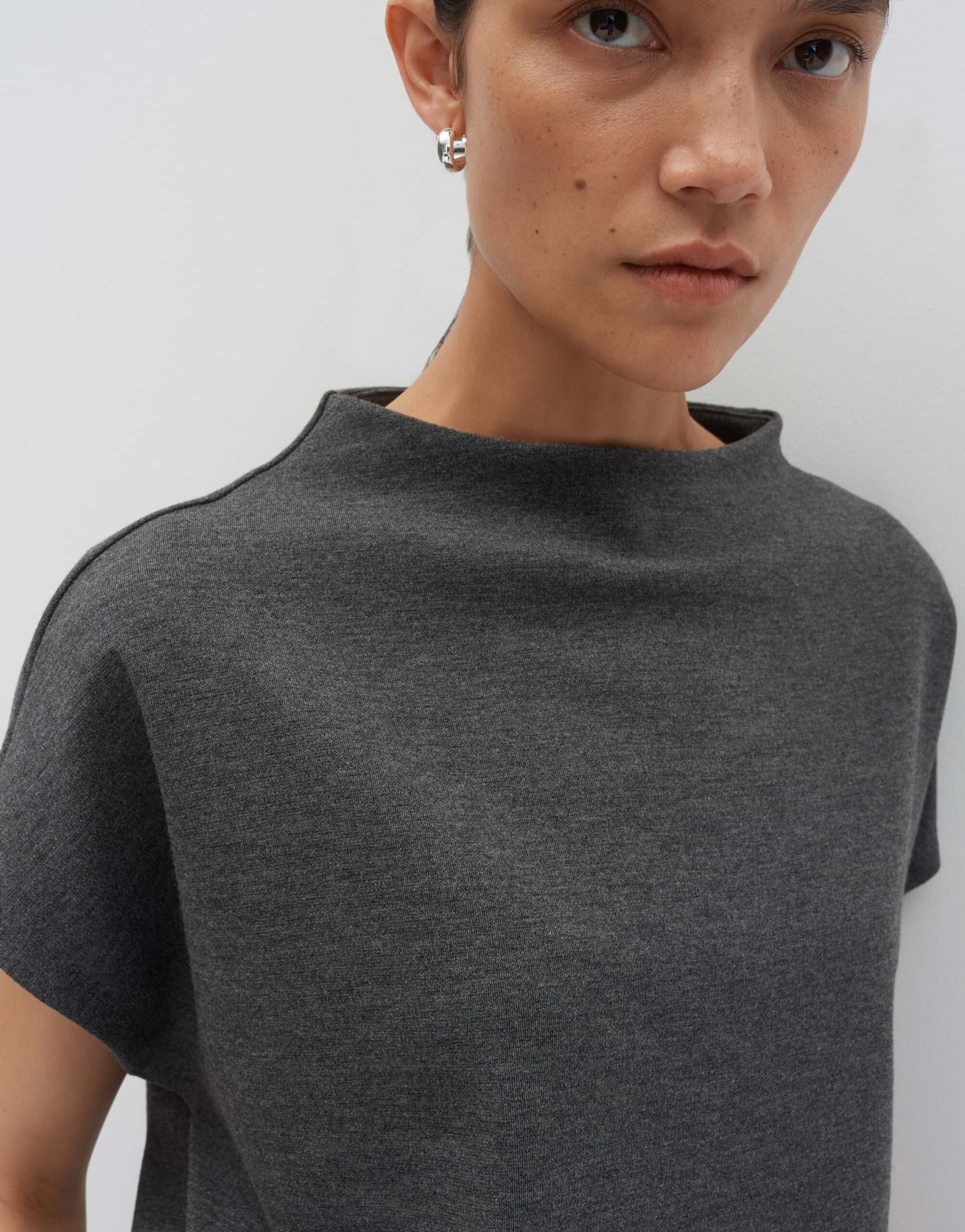 Das Kleid Kalene in O-Form besticht durch seine lockere Passform und den Mélange-Effekt. Mit einem Funnel Neck und überschnittenen Kurzarmen ist es ein bequemes und dennoch stylisches Kleidungsstück. Die Rückenlänge beträgt ca. 55 cm bei Größe 36. Das Model ist 176 cm groß und trägt Größe 36.