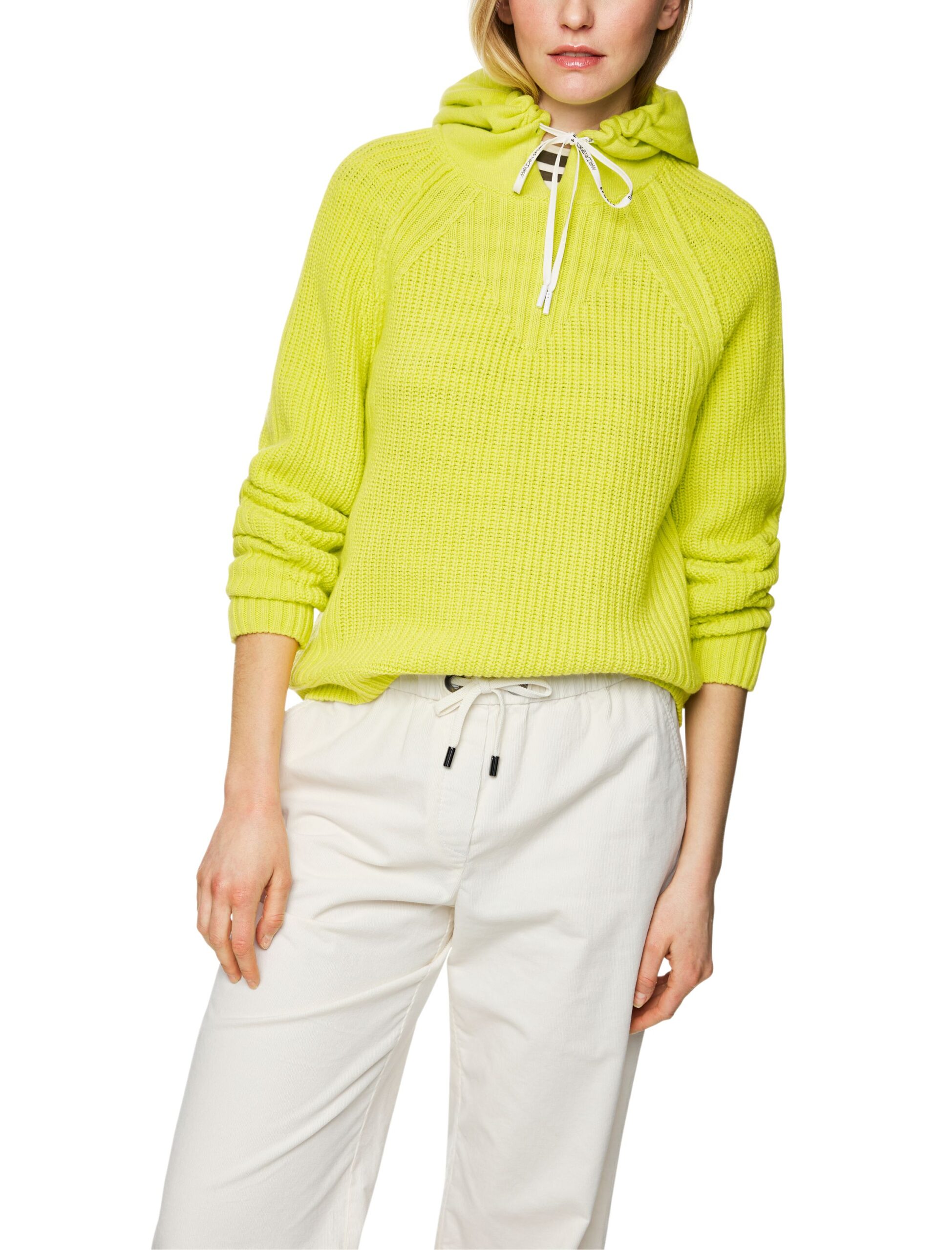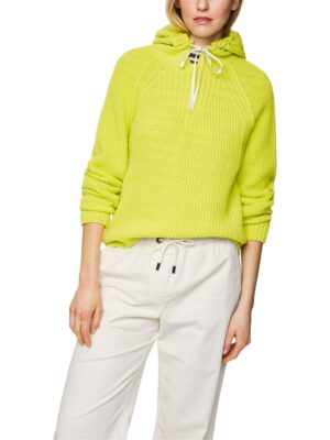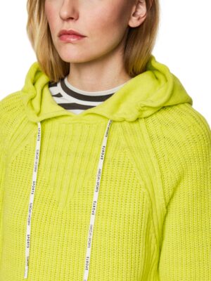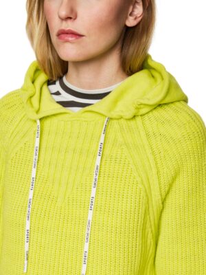 Der legere Kapuzenpullover hat eine weite Passform mit Raglanärmeln. An der Kapuze verfügt er über einen Kordelzug mit Marc Cain Sports Schriftzug. Das Modell ist „Knitted in Germany“: Das Verstricken der Garne auf hochmodernen Strickmaschinen und die Veredelung der Stoffe geschehen am Standort Deutschland. Zusammengenäht werden die einzelnen Teile wie Ärmel, Vorderteil etc. in europäischen Partnerbetrieben. Locker geschnitten. Kapuze mit Kordelzug. Langarm. Das Model ist 179 cm groß und trägt N3/38.