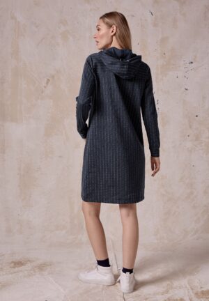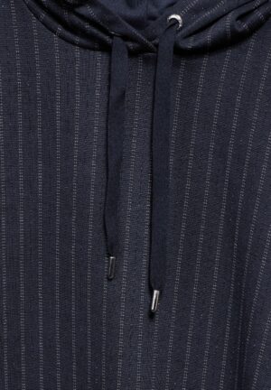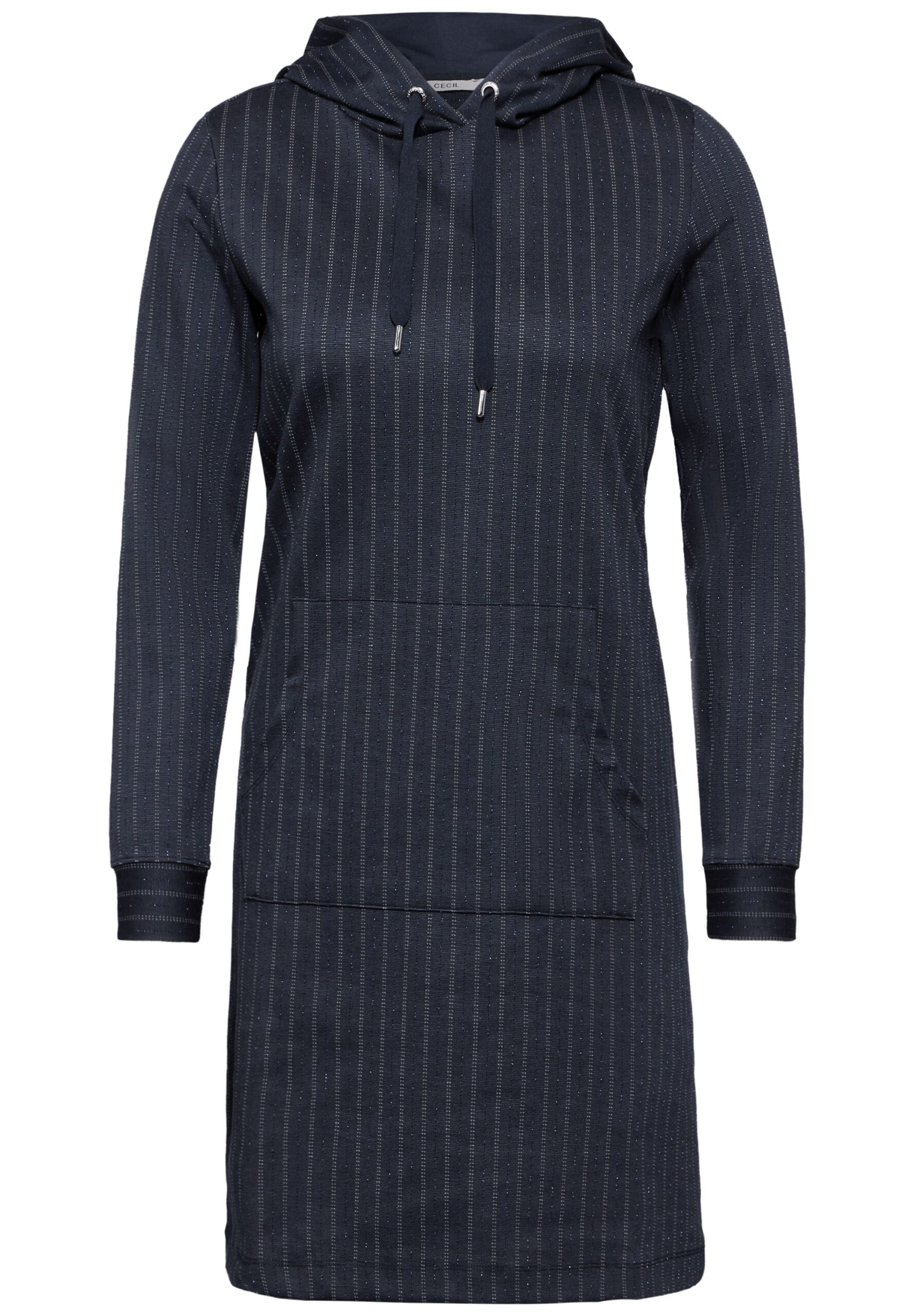 Das Kleid mit Nadelstreifen von CECIL für Damen ist ein modischer Hingucker. Das knielange Kleid hat eine Kapuze mit Tunnelzug, eine Kängurutasche und lange Ärmel. Der leichte Glanz verleiht dem Kleid eine besondere Note. Knielanges Kleid. Kapuze mit Tunnelzug. Kängurutasche. Langarm. Mit metallisierten Fasern. Material: 50% Polyester, 42% Viskose, 8% Metallfasern.