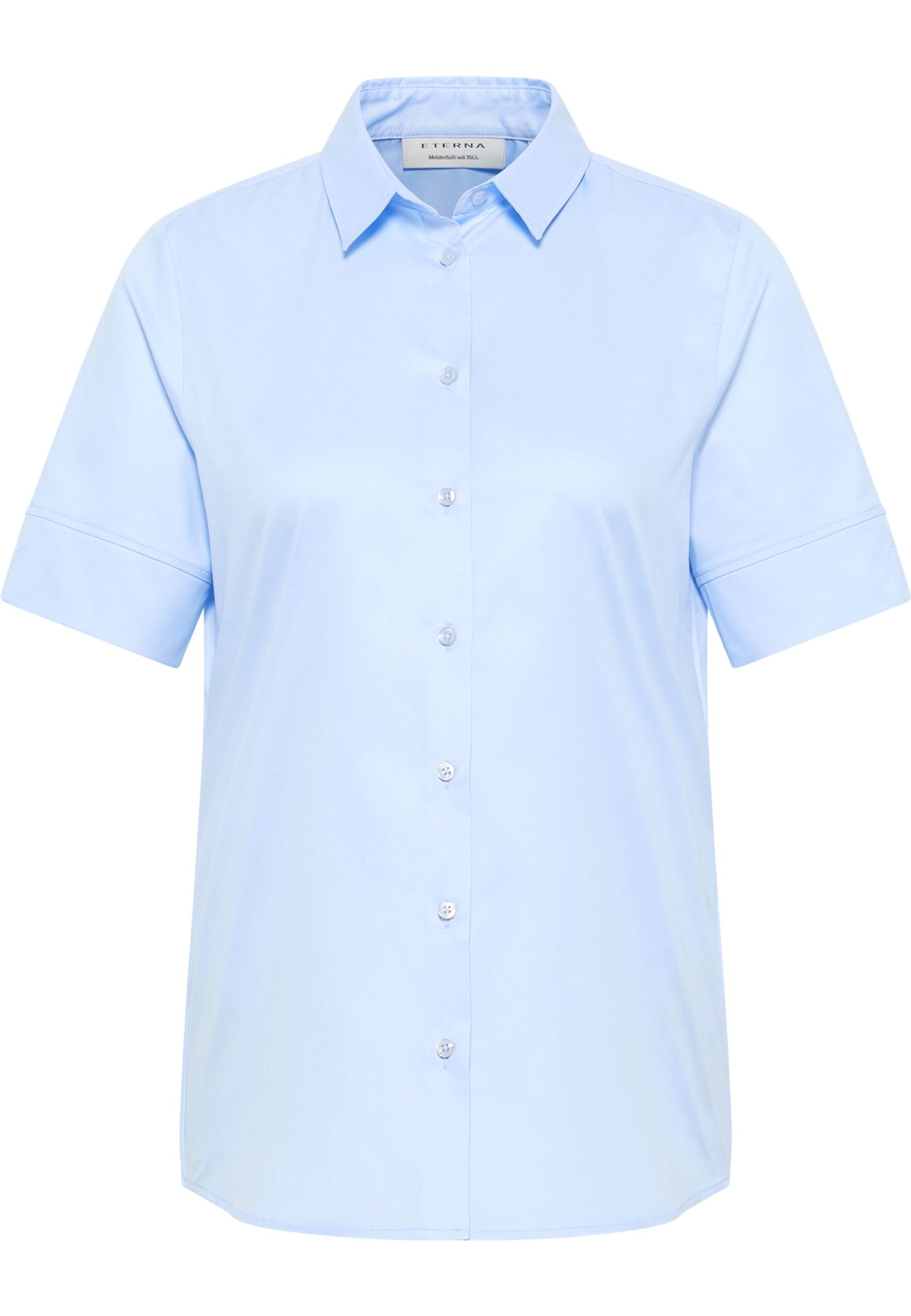 Blickdicht, hochwertig und bügelleicht – das ETERNA COVER SHIRT. Unser blickdichtes COVER SHIRT verdeckt alles, was Frau nicht zeigen will. Ob Spitzenunterwäsche oder Tattoo: Mit der COVER SHIRT Kurzarmbluse bestimmen Sie selbst, wer diese Details zu sehen bekommt. Innovative Garnkonstruktion und meisterhafte Webverfahren sorgen dafür, dass die Bluse blickdicht ist. Als Two-Ply-Bluse aus 100% Baumwolle und in feinstem Twill, bietet diese Bluse höchsten Tragekomfort und ist zudem bügelleicht. Die zeitlose Modernität wird Sie bei dieser REGUALR FIT Bluse, mit Hemd-Kragen und einer Rückenlänge von 72 cm, ebenfalls begeistern. Die REGULAR FIT Bluse ist gerade geschnitten und schmeichelt deshalb allen Körperformen. Dieses Modell ist über die Seitennaht leicht tailliert. Für klassische und zeitlose Looks. Immer elegant. Ausnahmslos stilsicher. Bestellen Sie diese blickdichte Kurzarmbluse jetzt im ETERNA Online-Shop.