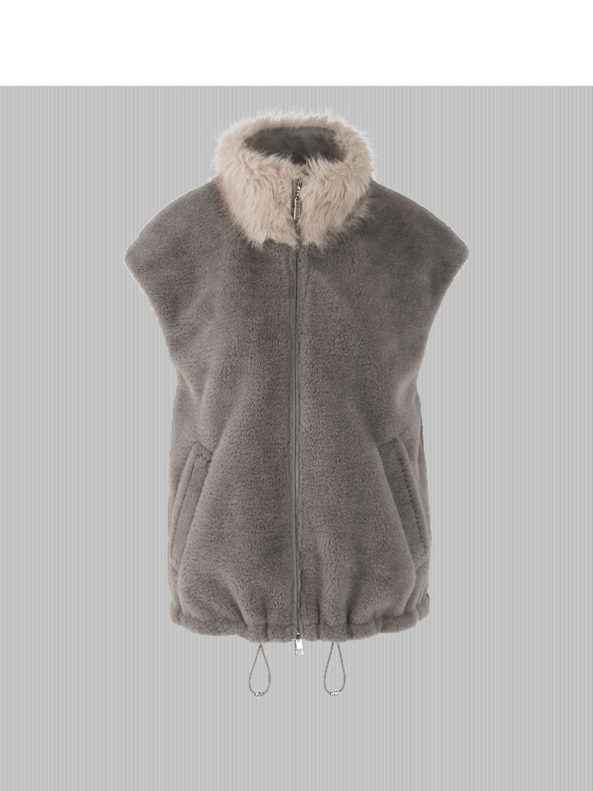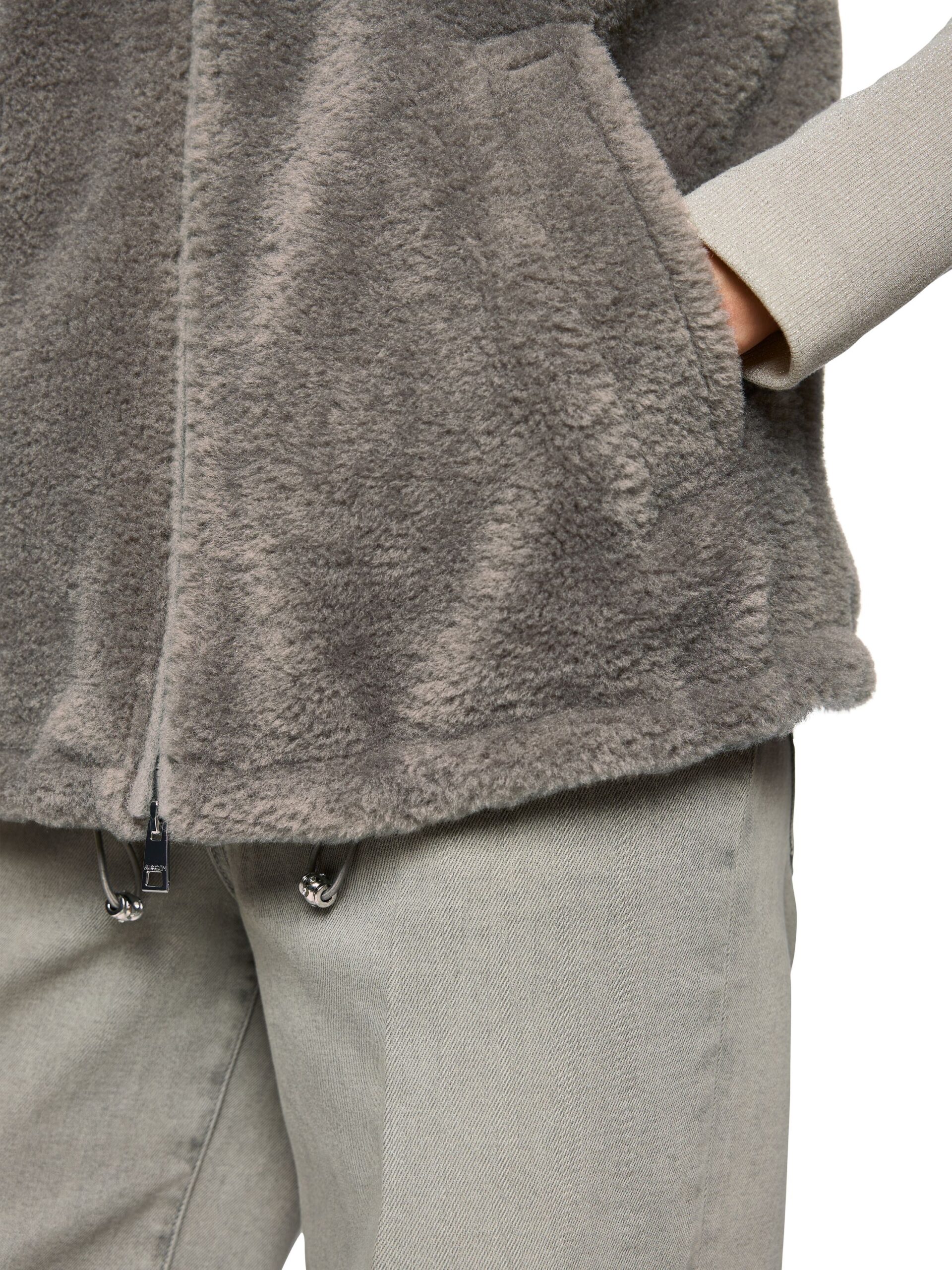 Diese kuschelige Weste mit langhaarigem Fake Fur Kragen sorgt für stilvolle Wärme an kalten Tagen. Der Kragen ist innen weich gefüttert mit Wolle. Überschnittene Schultern und praktische Eingrifftaschen runden das Design ab. Der Zwei-Wege-Reißverschluss sorgt für Flexibilität. Ideal für den modernen Layer-Look. Locker geschnitten. Fake Fur Kragen. Zwei-Wege-Reißverschluss. Eingrifftaschen. Das Model ist 179 cm groß und trägt N3/38.