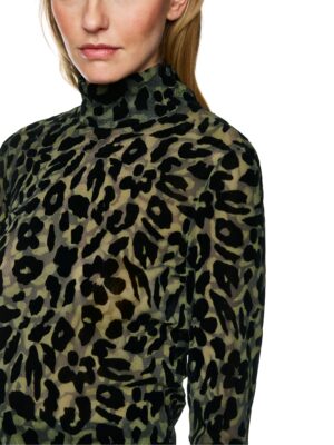 Langarm T-Shirt aus hauchfeinem Netz mit Leo-Print, verziert mit Velours-Applikationen im selben Leo-Muster. Das Modell ist körpernah geschnitten und das Material ist natürlich elastisch. Trendy: der hohe Turtle Neck. Perfekt für cooles Layering. Körpernah geschnitten. Turtle Neck. Langarm. Semitransparent. Das Model ist 179 cm groß und trägt N3/38.