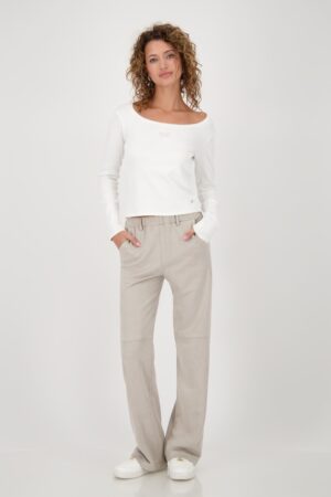 Dieses langärmlige Shirt aus hochwertiger, elastischer Baumwolle bietet eine taillierte Form und ist mit funkelnden Strasssteinen verziert.