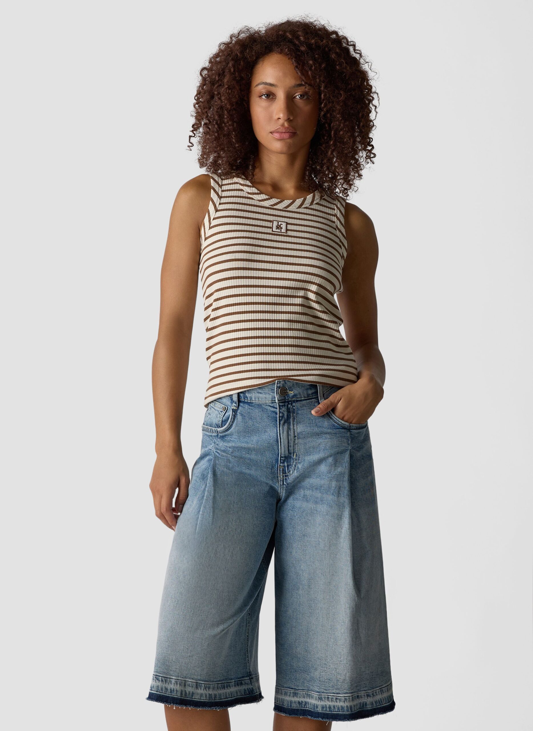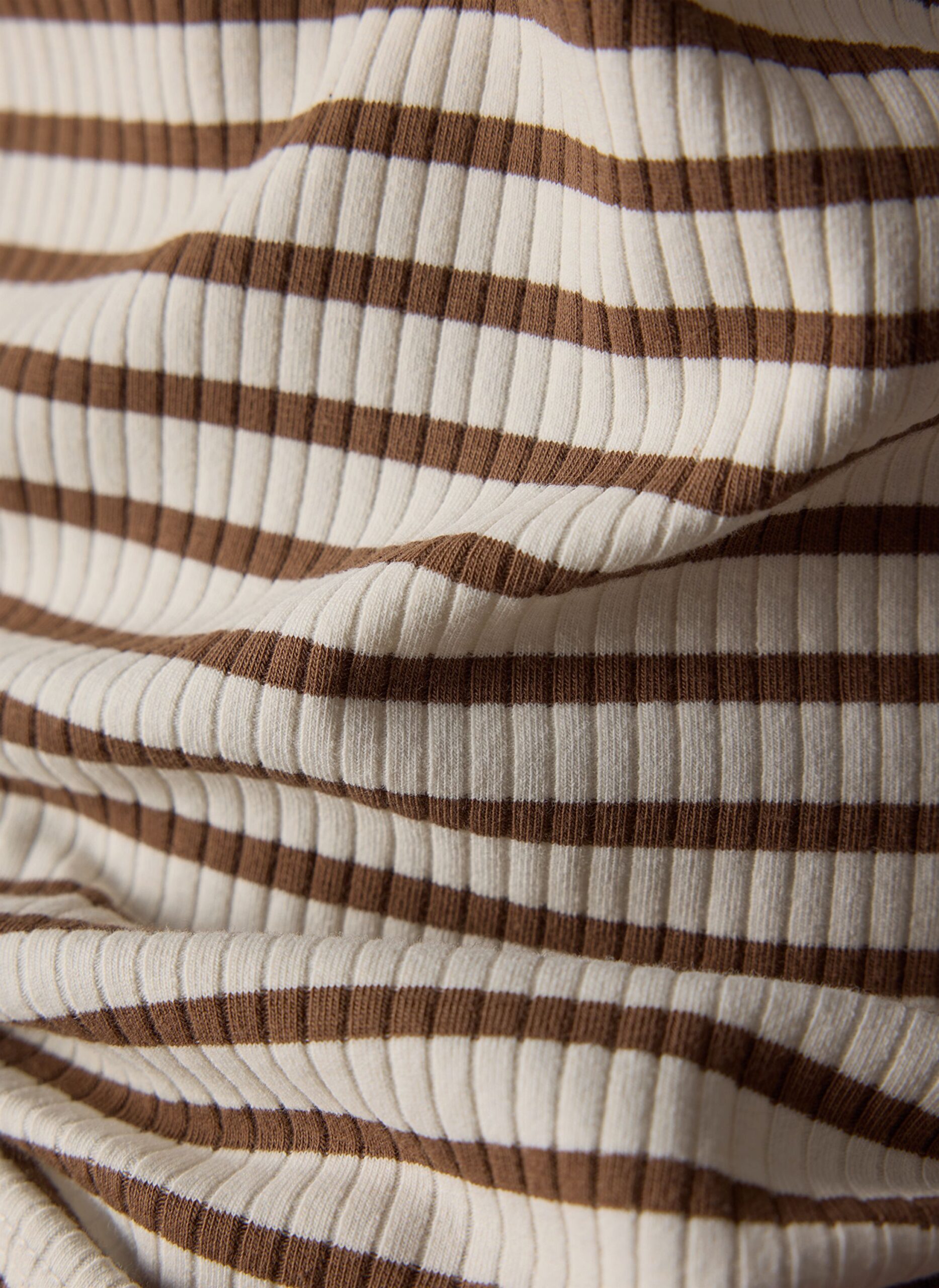 Dieses Kurzarm-Sweatshirt verbindet sportiven Stil mit angenehmem Tragekomfort. Das Streifenmuster wird durch eine markante, aufgesetzte Schriftapplikation auf der Vorderseite ergänzt. Der weiche Materialmix aus Baumwolle, Modal und Polyester fühlt sich angenehm auf der Haut an und sorgt für Formstabilität sowie Pflegeleichtigkeit. Die lockere Passform mit überschnittenen Schultern macht das Oberteil zu einem vielseitigen Begleiter für entspannte Alltagslooks.