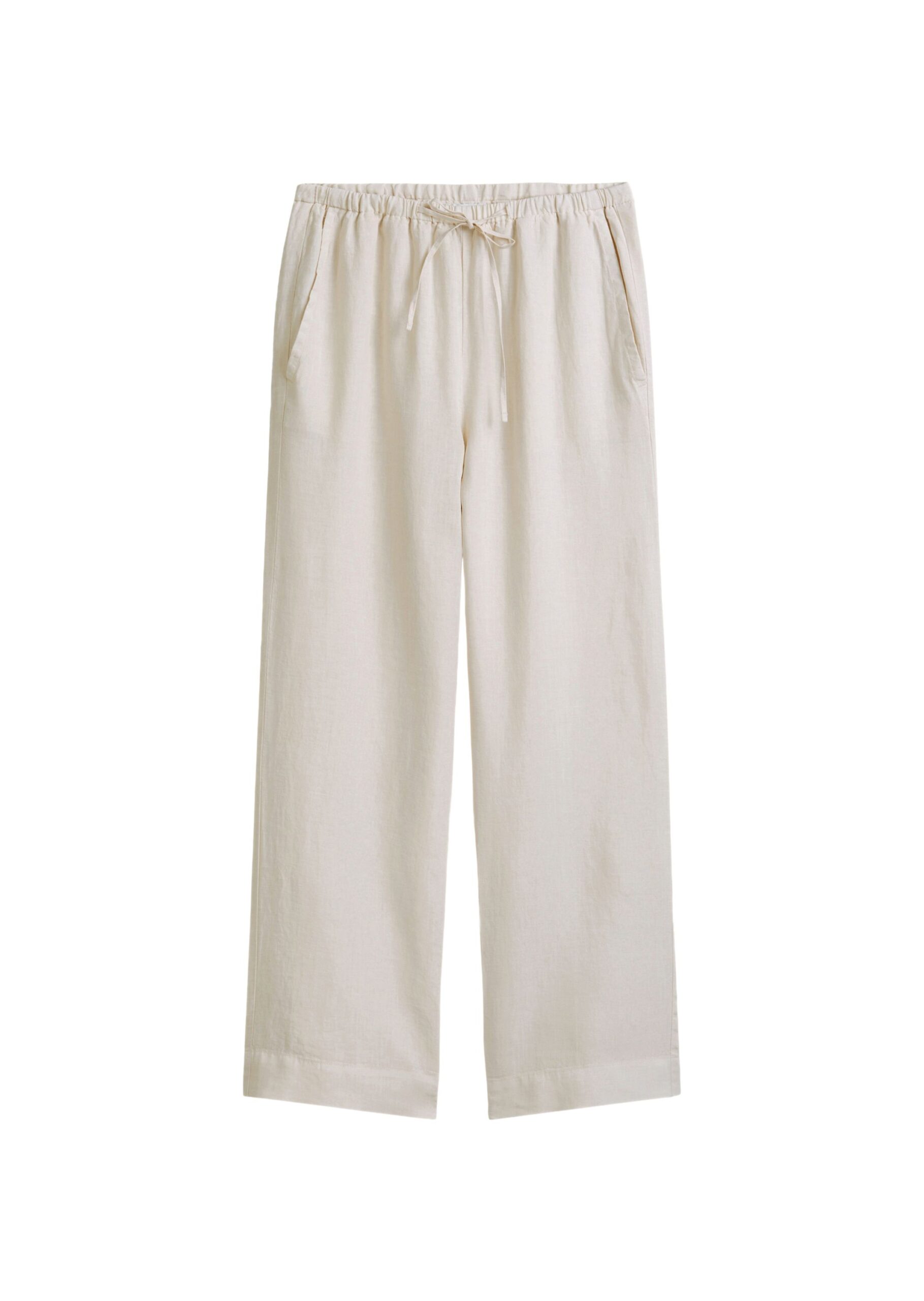 Die Leinen-Joggpants straight ist lässig aber nicht nachlässig, kühlend und trotzdem cool, leicht verknittert, aber ohne Falten. Der Stoff ist fein strukturiert und bietet natürliche Atmungsaktivität. Die Hose verfügt über einen schmalen, teil-elastischen Bund mit Kordelzug und Bindeband, schräge, eckig abgesteppte Eingrifftaschen vorne und eine große, aufgesetzte Gesäßtasche. Leinen ist die Powerfrau unter den Naturfasern – das Material nimmt Feuchtigkeit von außen auf, gibt sie schnell wieder ab und kühlt so die Haut. Flachs ist eine genügsame Kulturpflanze, die ohne künstliche Bewässerung und mit wenig Dünger auskommt.