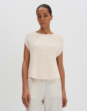 Lockeres Feinstrick-Kleid in O-Form mit überschnittenen Kurzarmen und U-Boot-Ausschnitt. Die Rückenlänge beträgt ca. 58 cm bei Größe S. Das Model ist 178 cm groß und trägt Größe S. Der Feinstrick hat eine feine Rippstruktur und einen weichen Griff.