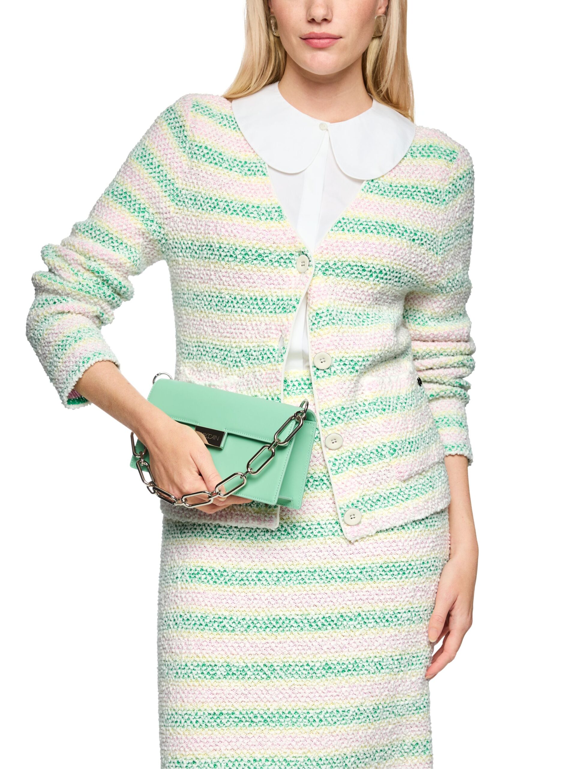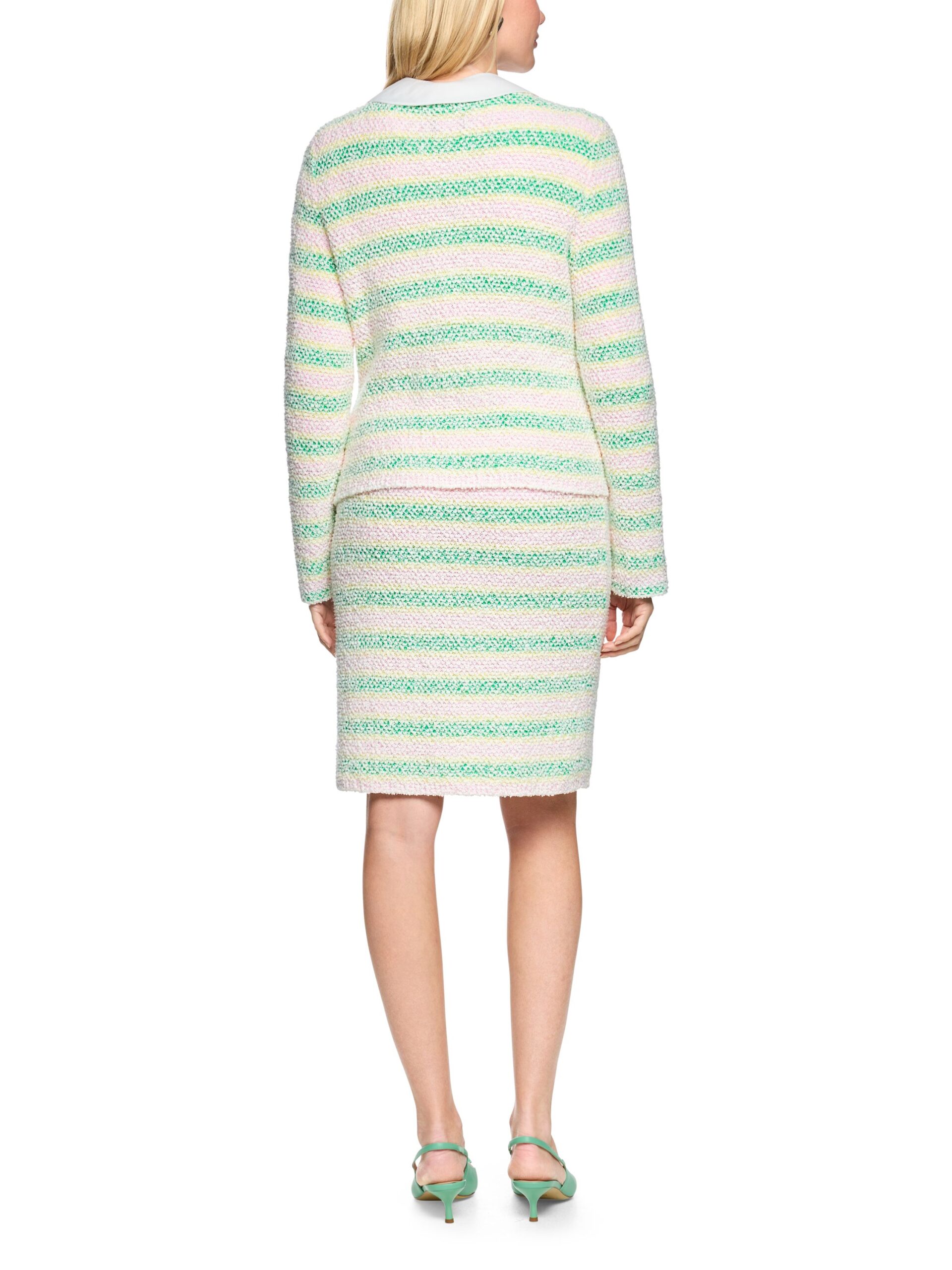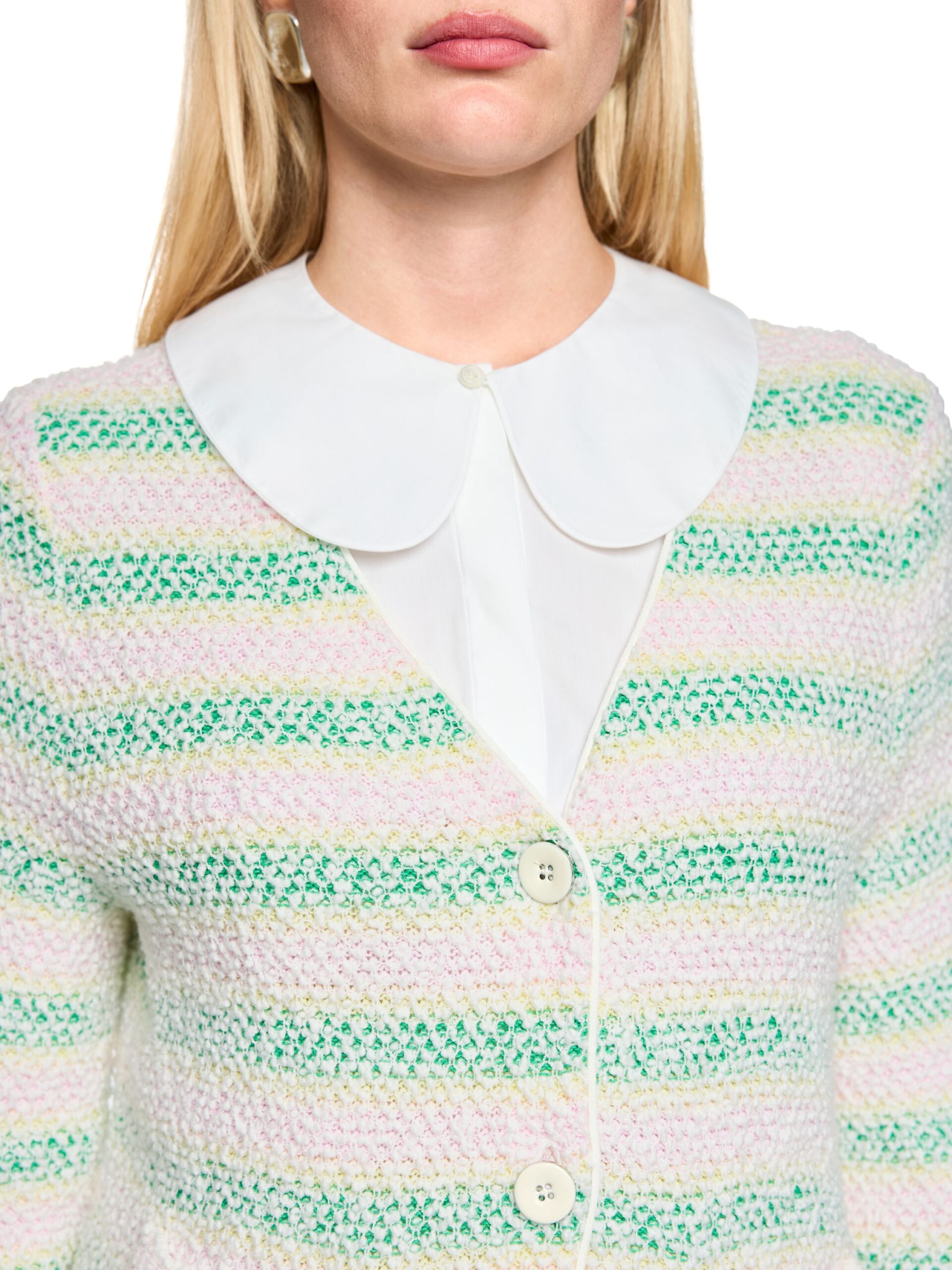 Der Bouclé-Cardigan wurde in Deutschland gestrickt und besticht durch seine hochwertige Verarbeitung. Der V-Ausschnitt, die aufgesetzten Taschen und die mehrfarbige Struktur verleihen dem Cardigan einen zeitgemäßen Look. Das Modell ist locker geschnitten und durchgehend geknöpft. Das Model auf dem Bild ist 179 cm groß und trägt Größe N3/38.