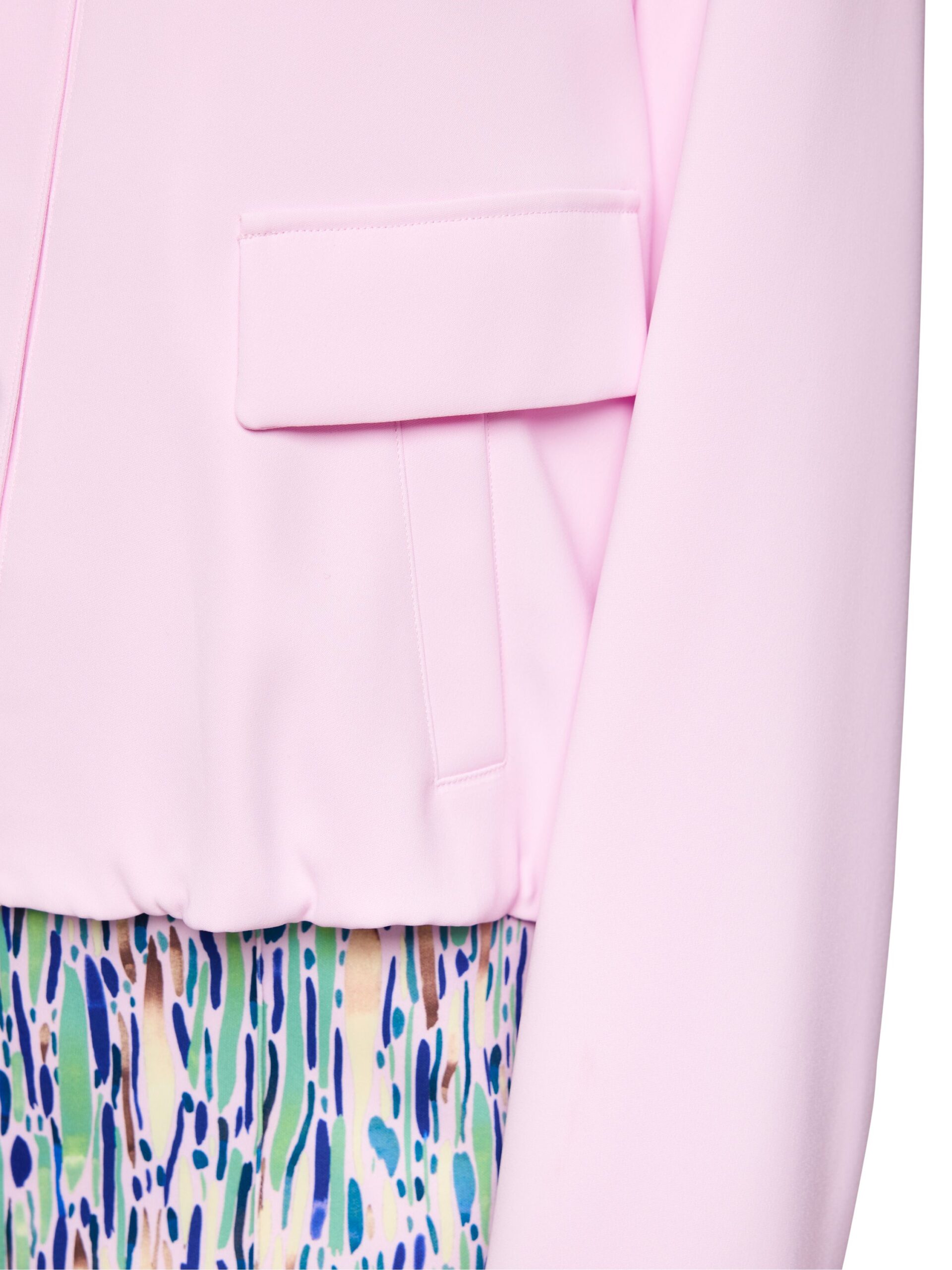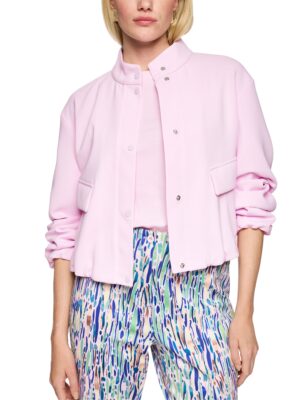 Die Jacke mit kleinem Stehkragen von Marc Cain Collections überzeugt mit einem elastischen Gummibund an Saum und Ärmeln. Die Eingrifftaschen bieten Stauraum, während die Klappen stylische Details darstellen. Vielseitig kombinierbar für Alltag, City-Look oder Outdoor-Aktivitäten. Mit Innenfutter. Das Model ist 179 cm groß und trägt N3/38.