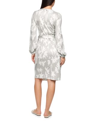 Ein elegantes Wickelkleid aus hochwertigem Viskosegemisch mit einer leicht schimmernden Optik. Die Ballonärmel verleihen dem Kleid Volumen, während der Wickelverschluss die Taille betont und für eine feminine Silhouette sorgt. Das dezente florale Muster sorgt für einen weichen Look. Das Kleid ist vielseitig kombinierbar und passt zu eleganten wie legeren Anlässen. Figurbetonter Schnitt. V-Ausschnitt. Ohne Innenfutter. Weicher Griff. Das Model ist 179 cm groß und trägt N3/38.