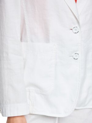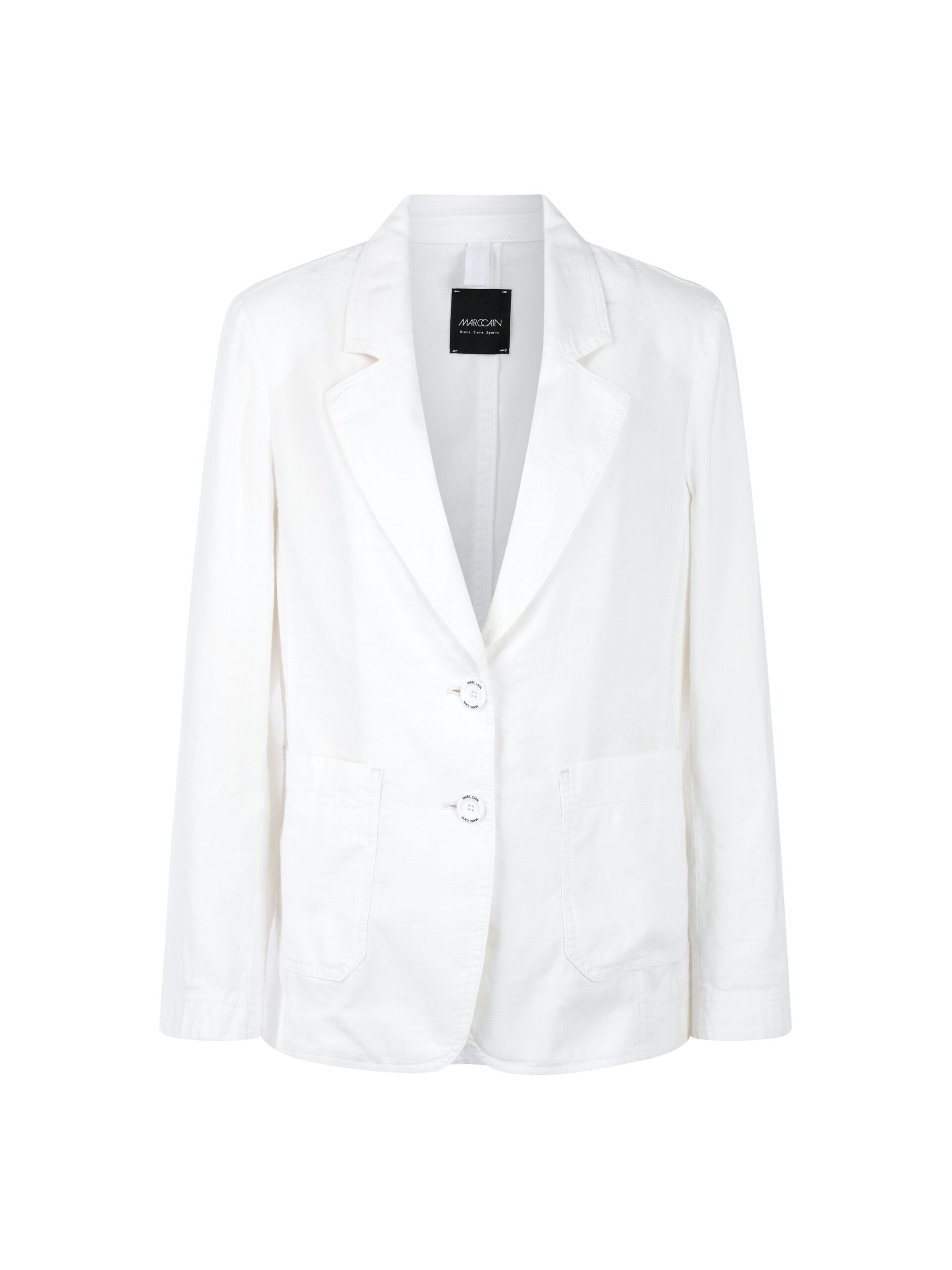 Der lockere Blazer von Marc Cain Sports überzeugt mit seinem luftig-leichten Materialmix und seinem klassischen Reverskragen. Die einreihige Knopfleiste mit Marc Cain Logo, die seitlichen Taschen und der kleine Schlitz auf der Rückseite verleihen dem Blazer eine elegante Note. Perfekt für die wärmeren Tage dank des angenehmen Materialmixes mit Baumwolle und Leinen. Das Model ist 179 cm groß und trägt N3/38.
