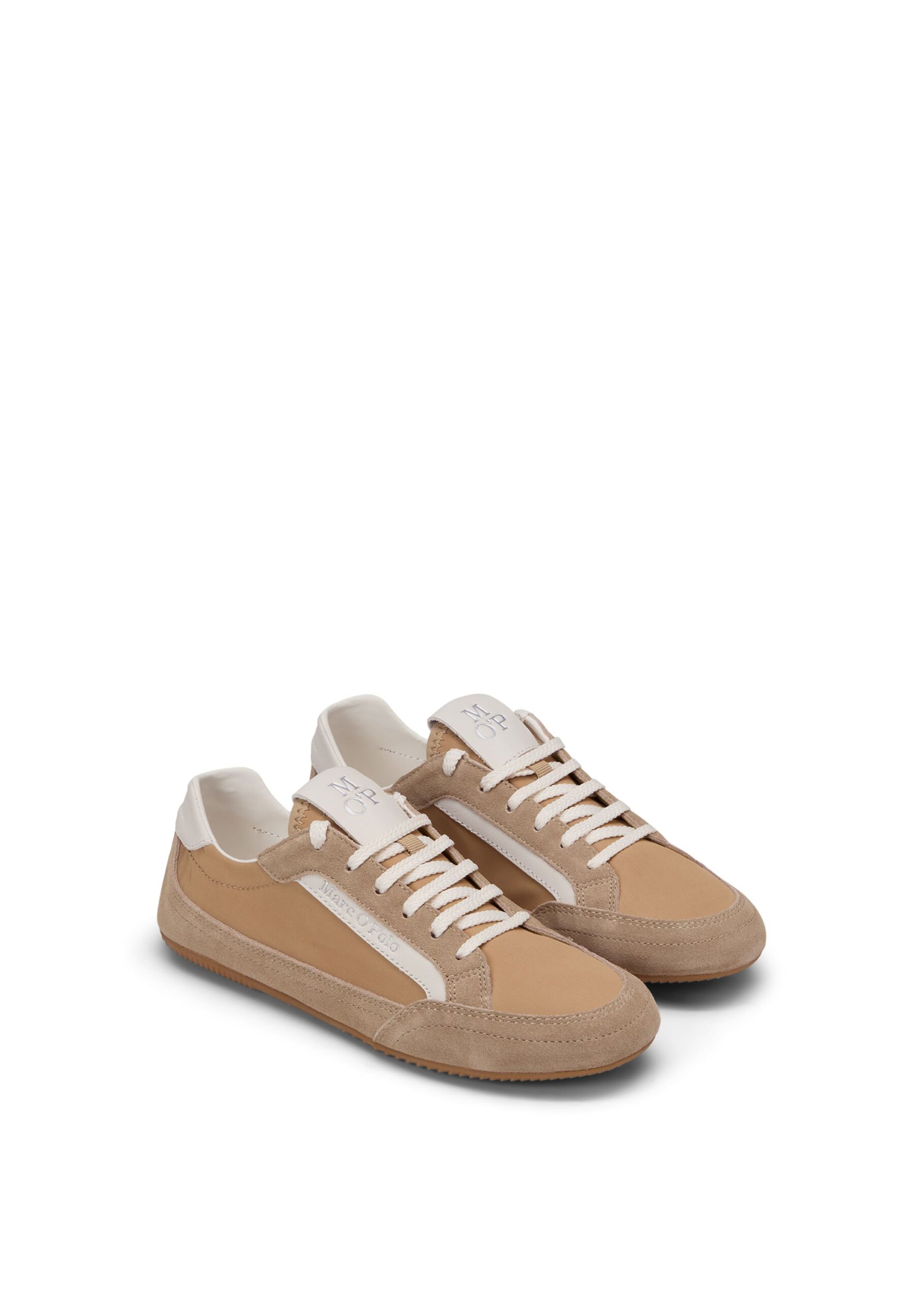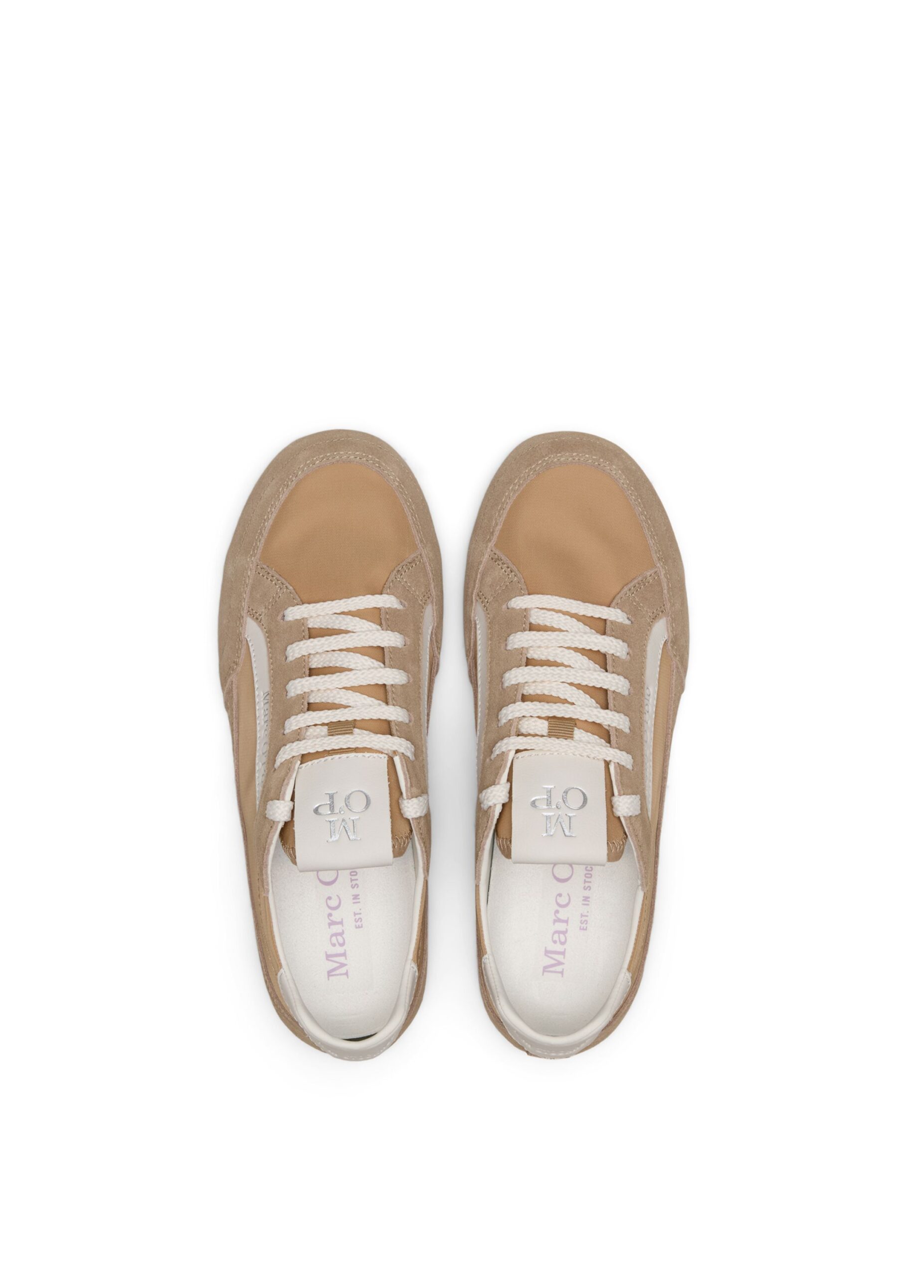 Der extra leichte Sneaker Model Lola überzeugt mit einer modernen, sportiven Ausstrahlung und hohem Tragekomfort. Weiches Veloursleder wird durch Glattlederakzente und Einsätze aus recyceltem Nylon ergänzt und verleiht dem Modell eine dynamische Optik. Die herausnehmbare Innensohle aus recycelter Mikrofaser mit Memory Foam passt sich dem Fuß angenehm an. Für sicheren Halt im Alltag sorgt die Gummi-Laufsohle mit dezentem Fischgratprofil, die speziell für Marc O’Polo entwickelt wurde.