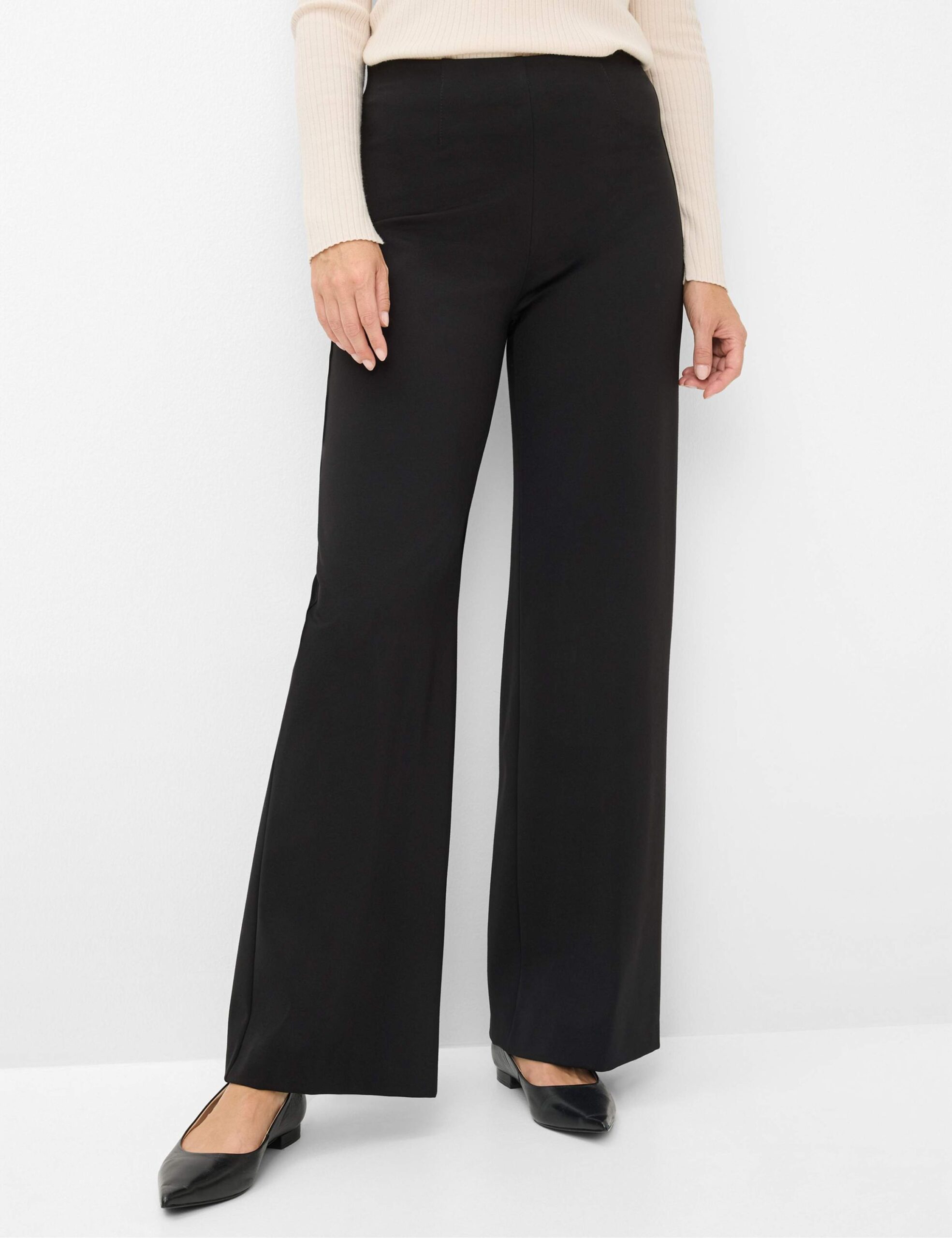 Der Winter ruft nach stilvoller Eleganz, und die Marlenehose im Style LILLYTH FLARED wird diesem Anspruch spielend gerecht. Diese feminine Schlupfhose kombiniert modernes Design mit einem Hauch von klassischer Anmut. Im Super Slim Fit, der durch schlanke Oberschenkel, einen leicht ausgestellten Beinverlauf und einer hohen Leibhöhe betont wird, zaubert sie eine schmeichelhafte Silhouette. Der elastische Pull On-Dehnbund sieht nicht nur gut aus, sondern sorgt bei dieser Hose für einen komfortablen Sitz. Besonders raffiniert wirken die dezenten Leistengesäßtaschen, die das minimalistische Erscheinungsbild unterstreichen, während funkelnde Swarovski-Elemente subtile Highlights setzen. Gefertigt aus einer hochwertigen Jersey-Qualität, bietet diese Hose ein wunderbar weiches Tragegefühl und einen geschmeidigen Fall. Der Materialmix aus Viskose, Polyester und Elasthan begeistert zudem mit Formbeständigkeit und einer hervorragenden Farbbrillanz. Diese Kombination aus Komfort und Stil macht die Marlenehose zum vielseitigen Allrounder.