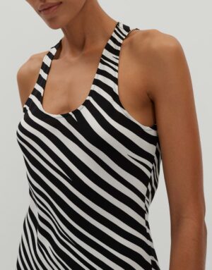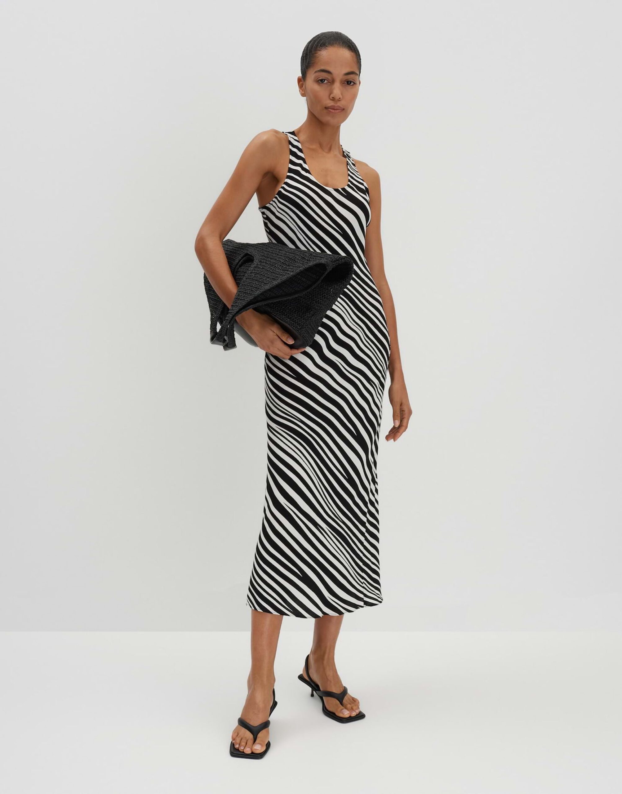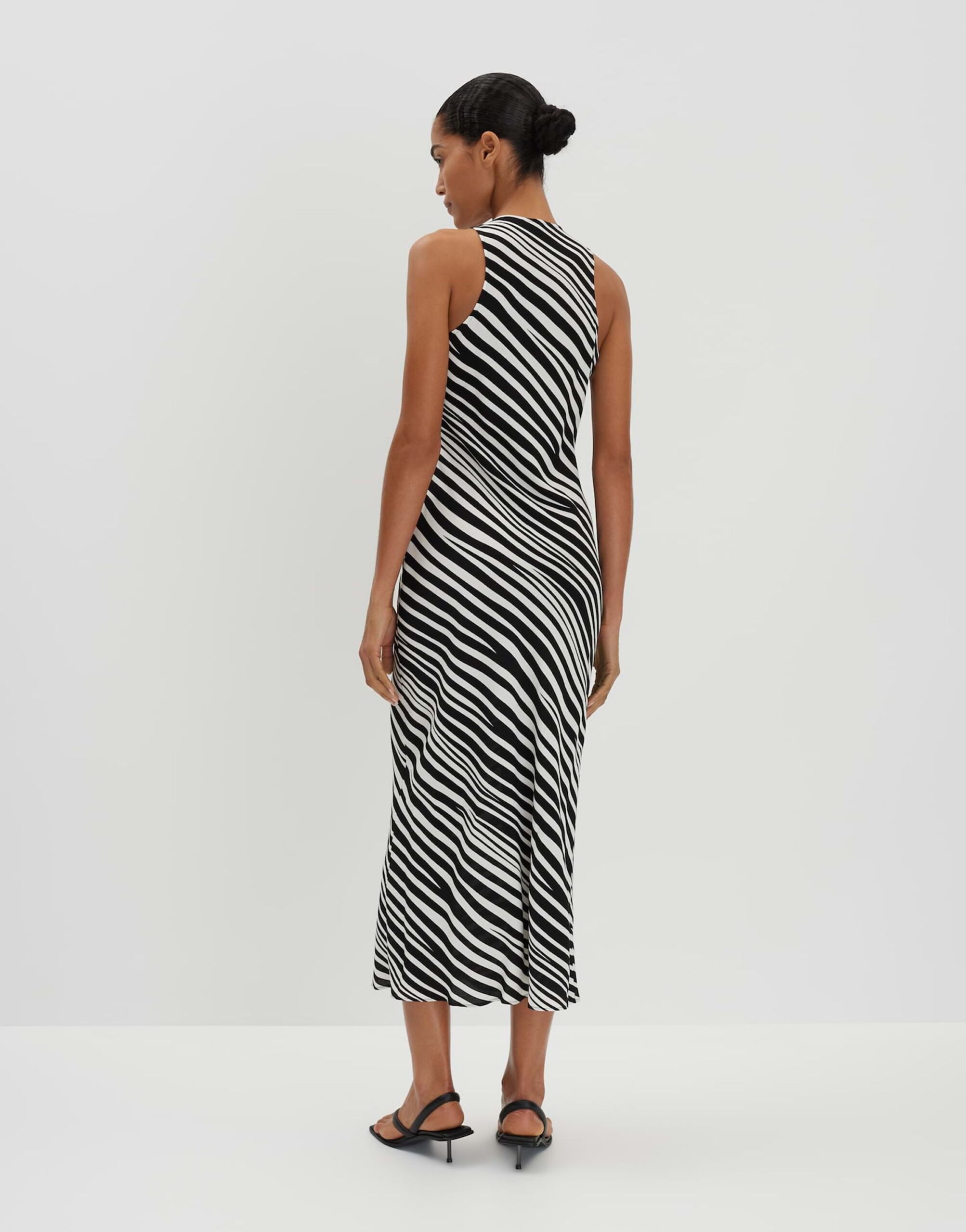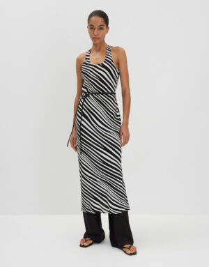 Das figurbetonte Midi-Kleid Quenn von SOMEDAY besticht durch seine leicht tallierte Passform und den tiefer Rundhalsausschnitt. Die ärmellose Webware mit gekreppter Oberfläche und natürlichem Griff sorgt für einen weich fließenden Fall. Mit einer Rückenlänge von ca. 118 cm in Größe 36 und einem Racerback im Rücken ist dieses Kleid ein echter Hingucker. Model Größe 179 cm trägt Größe 36.