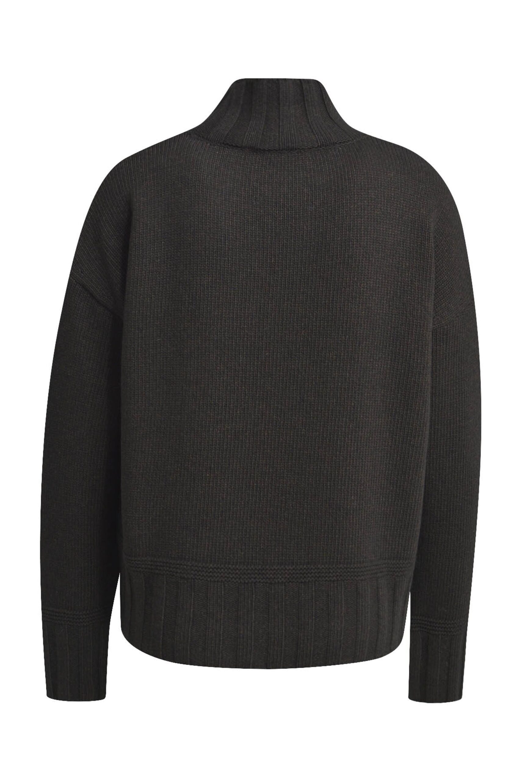 Dieser modische Pullover mit Stehkragen und übergroßen Schultern ist ein Must-Have für die kommende Saison. Mit 1/1 Ärmeln und einer lockeren Passform ist er sowohl stylisch als auch bequem.