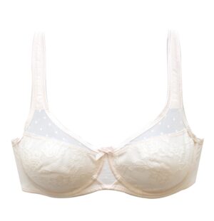 NUANCE Minimizer-BH von Nuance mit eingearbeiteten Formbügeln im eleganten Lagenlook, der die Büste optisch verkleinert. Obercups aus zartem leicht transparentem Tüll und Untercups blickdicht unterlegt und mit zarter Jacquardspitze verziert. Mit breiteren, gefütterten Trägern für einen bequemen Halt ohne Einschneiden auf den Schultern. Träger und Rückenverschluss verstellbar. BHs sind nicht trocknergeeignet, da die Versteller und Ringe durch die Hitze beschädigt werden und brechen.
