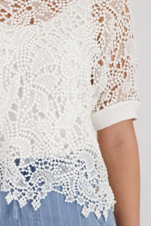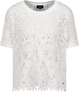 Der Pullover von monari besteht aus hochwertiger Baumwolle und besticht durch sein elegantes Spitzenmuster. Der gerippte Rundhalsausschnitt und die Ärmelbündchen verleihen dem Pullover eine klassische Note. Ein vielseitiges Kleidungsstück, das sich ideal für verschiedene Anlässe eignet.
