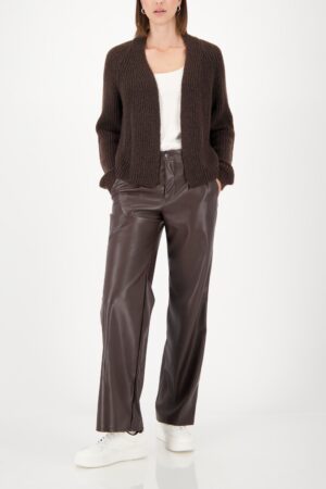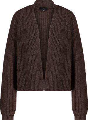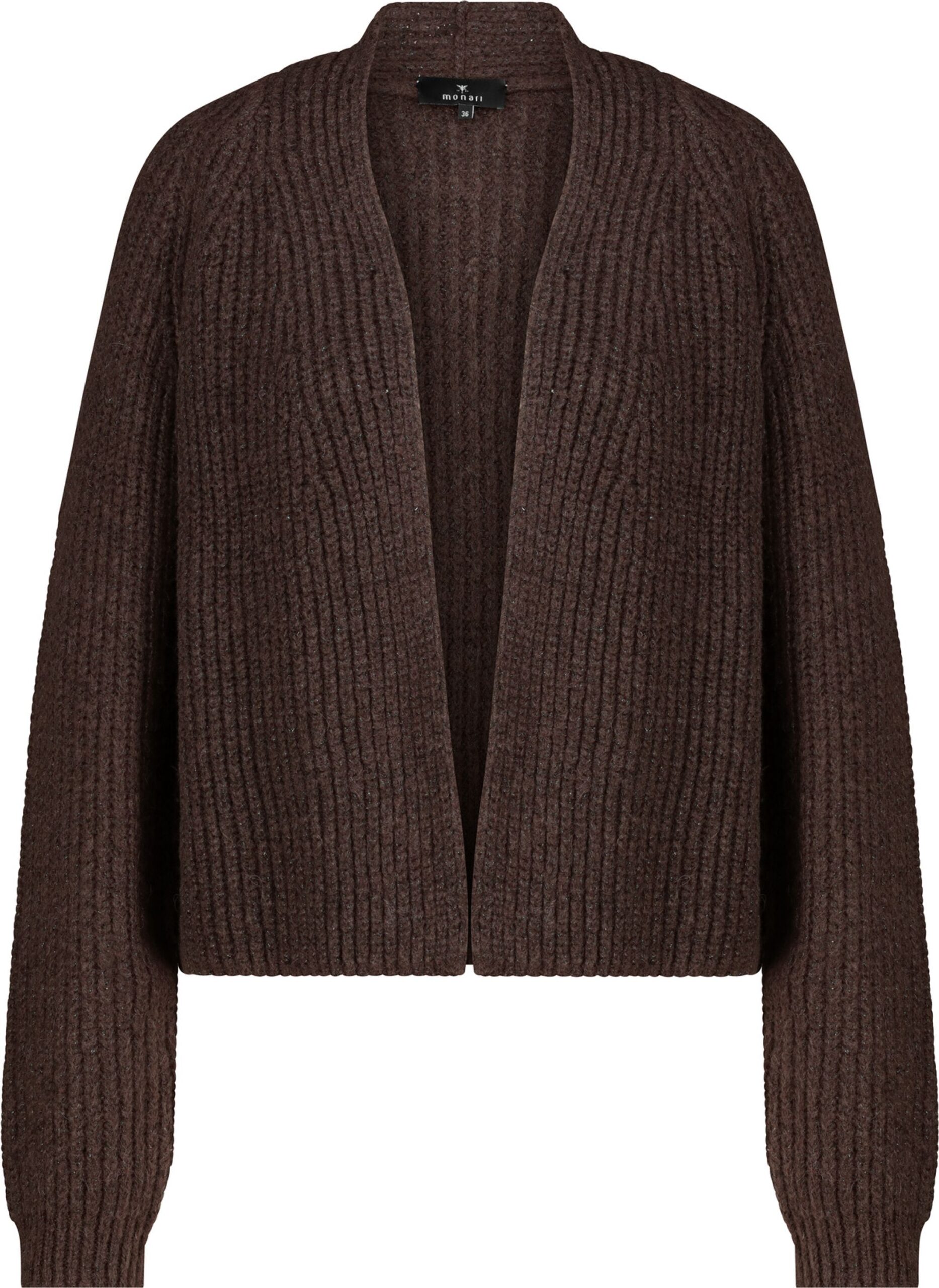 Die Strickjacke von MONARI ist ein edler Überwurf aus einer hochwertigen Wollmischung, veredelt mit glänzendem Lurex und einem zarten Perlfangmuster. Perfekt für stilvolle Outfits.