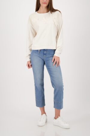Das Sweatshirt von MONARI aus reiner Baumwolle begeistert mit einem modernen Rundhalsausschnitt und auffälligen 3D-Blumen. Ein echter Hingucker für besondere Anlässe.