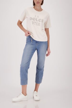 Das stilvolle T-Shirt von MONARI ist vielseitig einsetzbar und eignet sich für jeden Anlass. Es besteht aus einer hochwertigen Baumwolle mit Modal und verfügt über eine Frottee-Innenseite sowie eine edle Schmuckschrift.