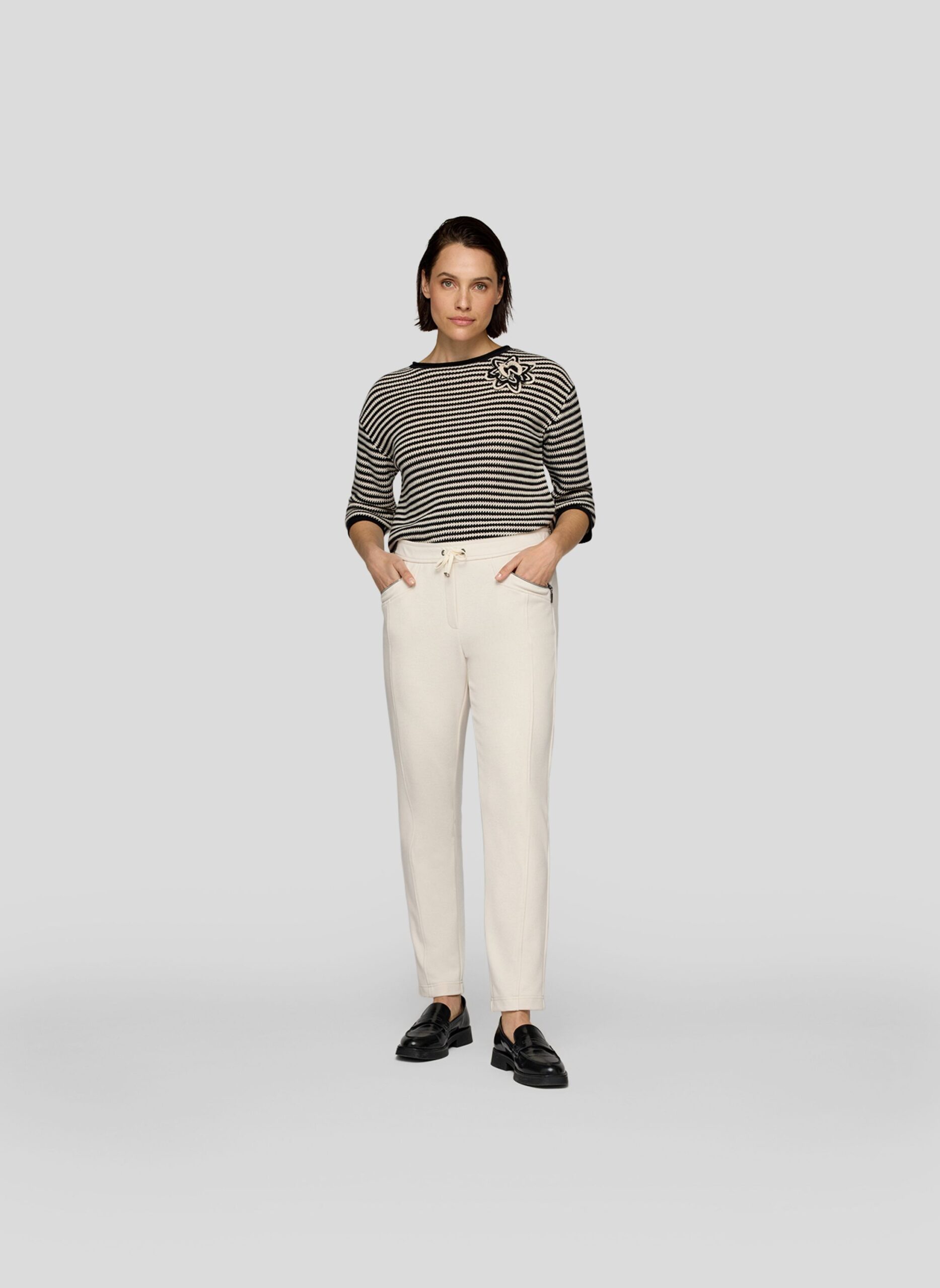 Diese Schlupfhose vereint Komfort und Style in einem modernen Design. Der bequeme Bund mit Tunnelzug sorgt für optimalen Sitz, während die dekorativen Reißverschlusstaschen vorn sportliche Akzente setzen. Die schmale Passform streckt optisch das Bein und unterstreicht eine feminine Silhouette. Dank des elastischen Materials trägt sich die Hose angenehm und macht jede Bewegung mit. Elastische Qualität für hohen Tragekomfort. Schmale, figurbetonte Schnittführung. Pflegeleichtes Material. Ein vielseitiges Basic, das sportliche und modische Looks perfekt ergänzt.