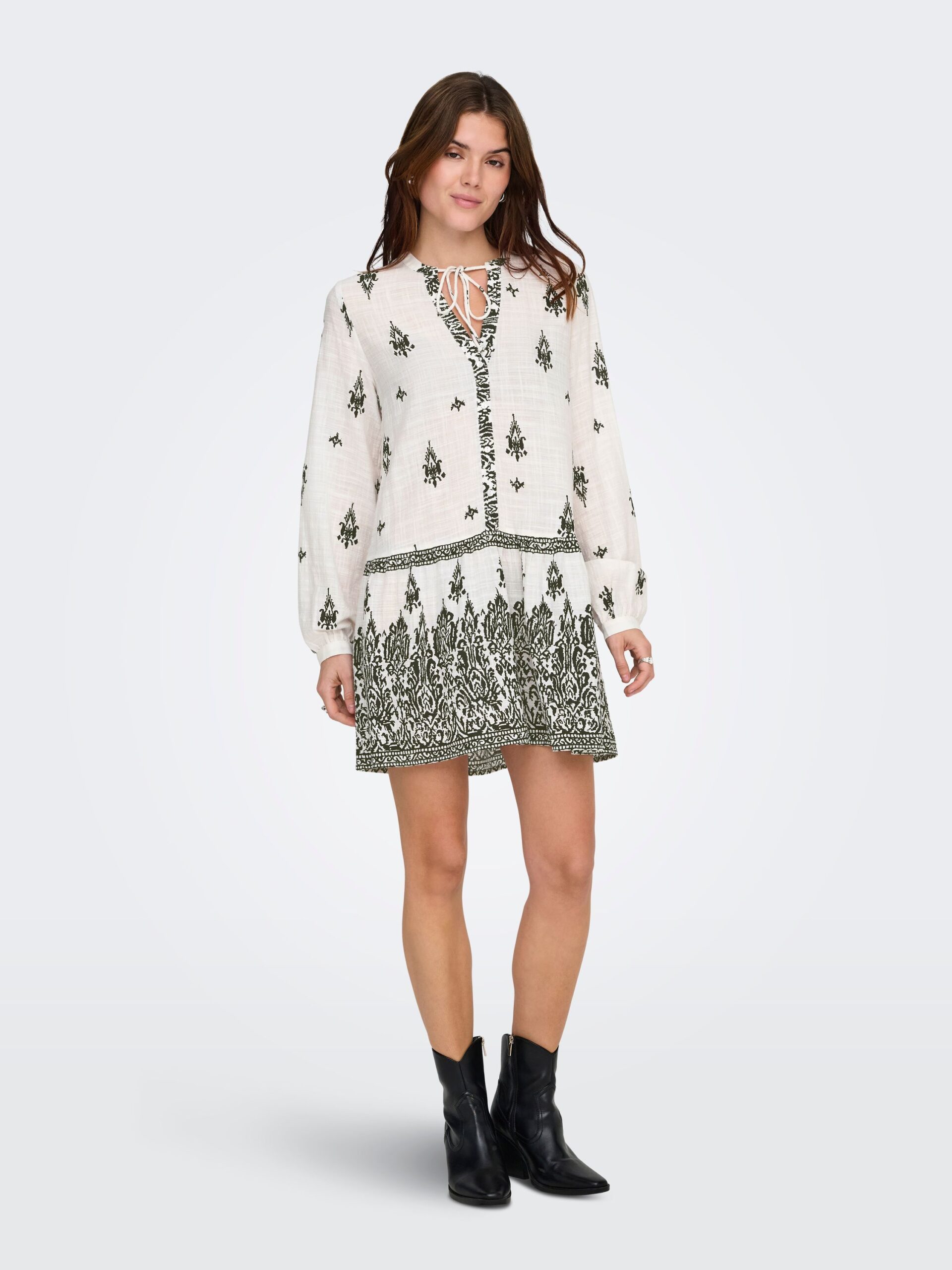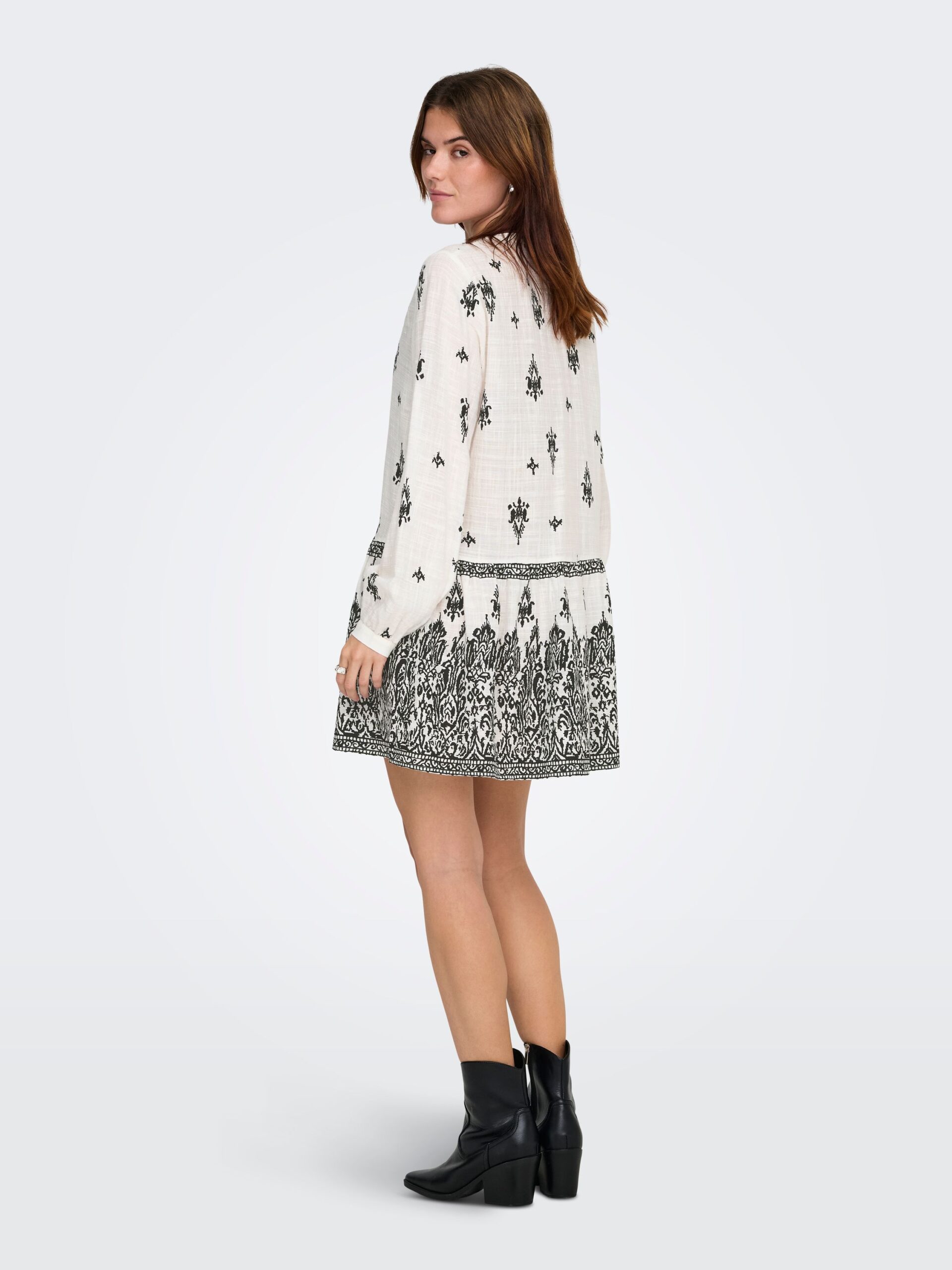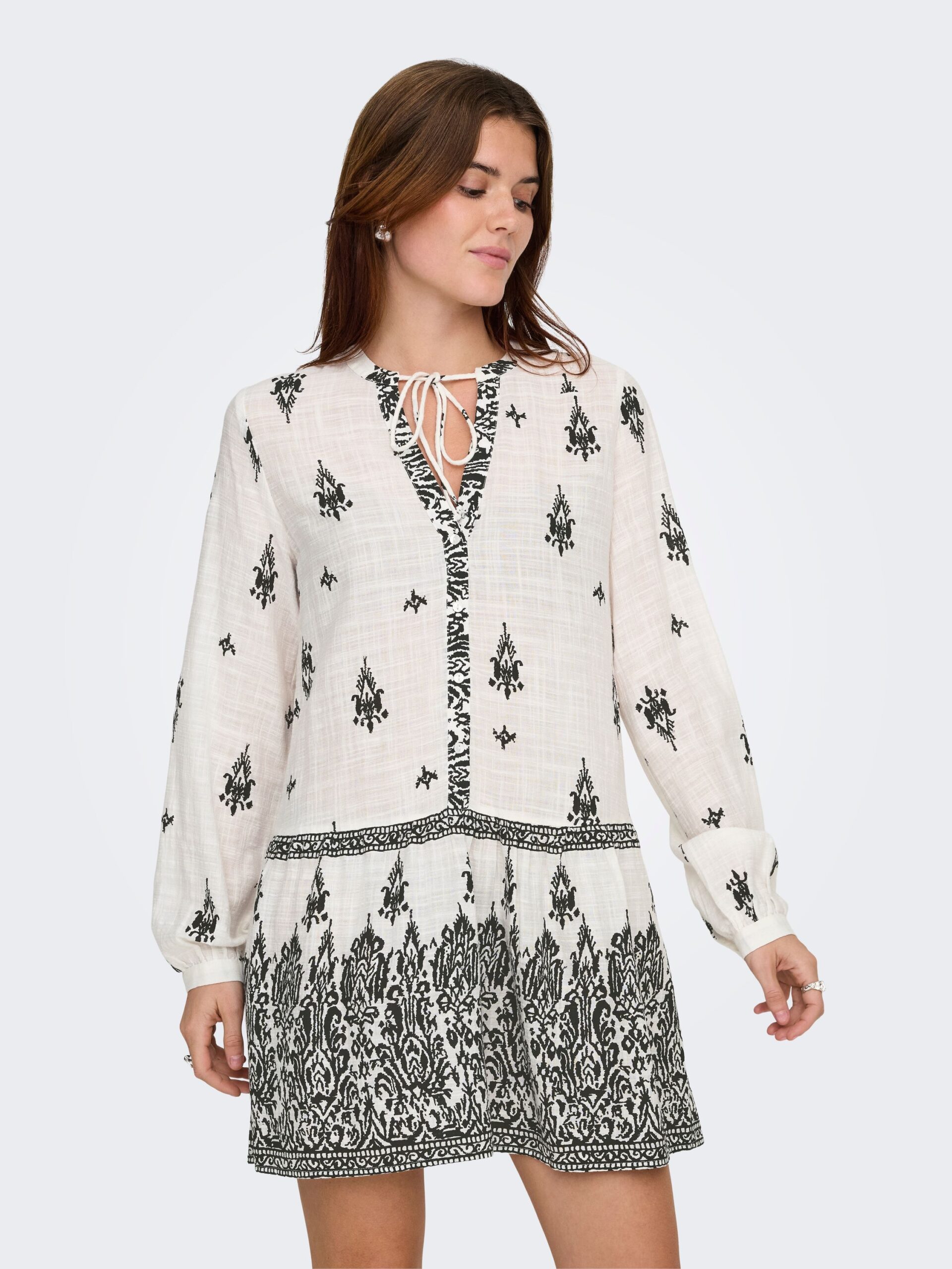 Dieses Kleid von ONLY ist perfekt für den Sommer und kann sowohl alleine als auch mit Hose oder Strumpfhose getragen werden. Es verfügt über einen V-Ausschnitt, lange Ärmel und ein Kordelzug-Detail. Die normale Passform sorgt für hohen Tragekomfort und macht das Kleid zu einem vielseitigen Begleiter für verschiedene Anlässe.