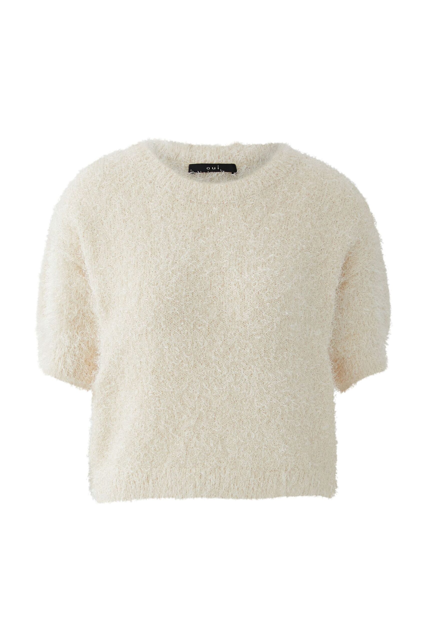 Der Pullover von Oui ist aus weichem Fransengarn gefertigt und besticht durch seinen subtilen Glanz. Er ist schmal geschnitten und verfügt über einen moderaten U-Bootausschnitt mit Rippbündchen. Die überschnittenen Schultern und der lockere Schnitt machen ihn zum perfekten Begleiter für den Alltag. Die Ärmelbündchen und der Saum sind mit Elasthan verstärkt. Länge bei Größe 36: 46cm.