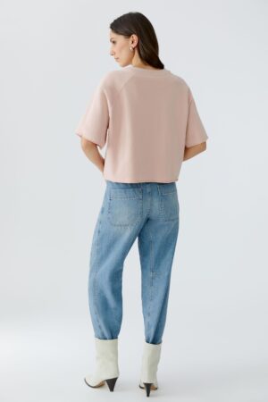 Das Sweatshirt von Oui ist aus reiner Bio-Baumwolle gefertigt und präsentiert sich in einem lässigen Oversized-Schnitt mit verkürzter Länge. Es verfügt über einen Rundhalsausschnitt mit Strickbündchen und einen coolen Raglanshape mit Halbarm. Alle Kanten sind geschnitten und zusätzlich versäumt. Länge bei Größe 36: 54cm.