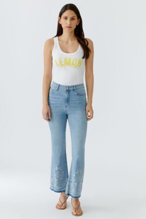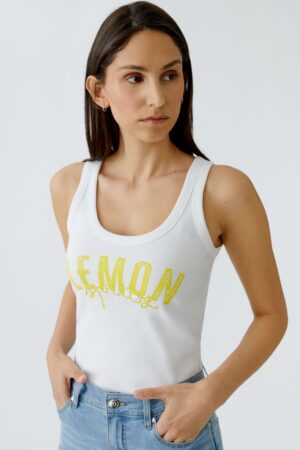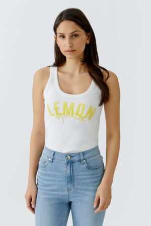 Das Tank Top von Oui ist schmal geschnitten und hat eine reguläre Länge. Es verfügt über einen sportiven, tiefen Rundhals und ist hinten hochgeschlossen. Hergestellt aus elastischer Baumwollrippe. Länge bei Größe 36: 62cm.