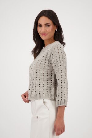 Gemütlicher Pullover aus weichem Chenillegarn mit Würfelstrickmuster und überschnittenen Schultern.