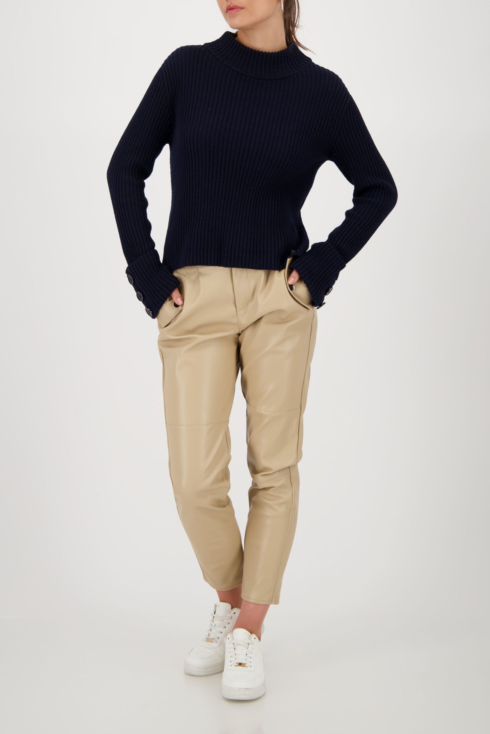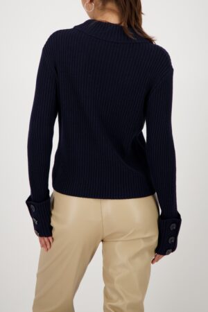 Hochwertiger Strickpullover aus einer Baumwollmischung mit Rippenstruktur und stilvollen Akzenten durch den Stehkragen und die breiten, knopfverzierten Ärmel.