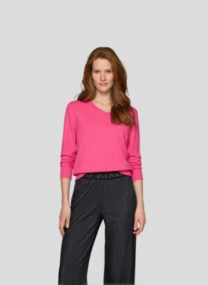 Der Pullover „Purple Clouds“ von RABE ist ein vielseitig kombinierbares Modell für Alltag und Freizeit. Mit V-Ausschnitt und feinem Rippstrick an den Abschlüssen sorgt er für eine dezente Struktur. Trageangenehm und pflegeleicht.