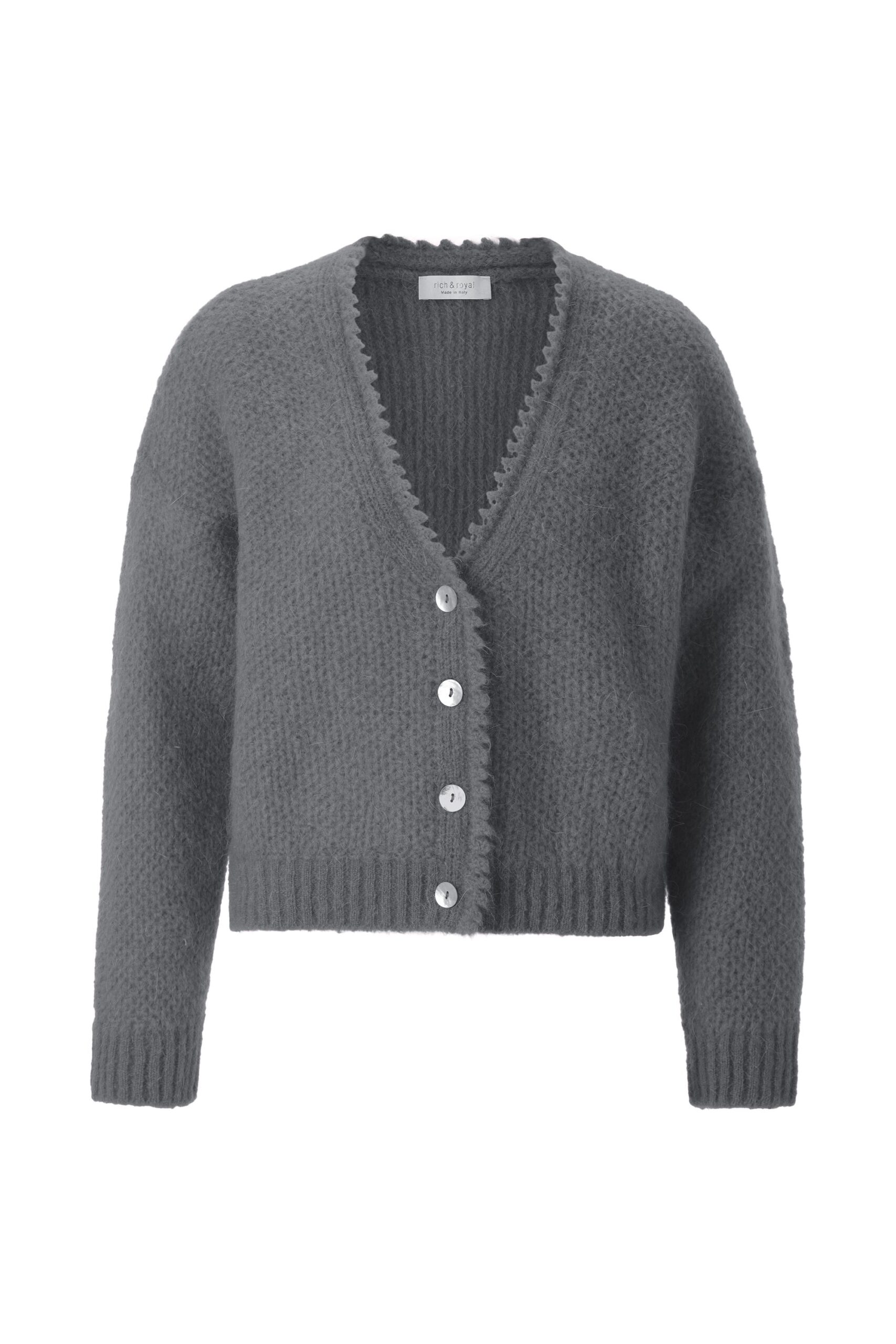 Der V-Neck Cardigan Tuck Stitch von Rich & Royal vereint Eleganz und Komfort in einem modernen Design. Perfekt für den Alltag oder besondere Anlässe.