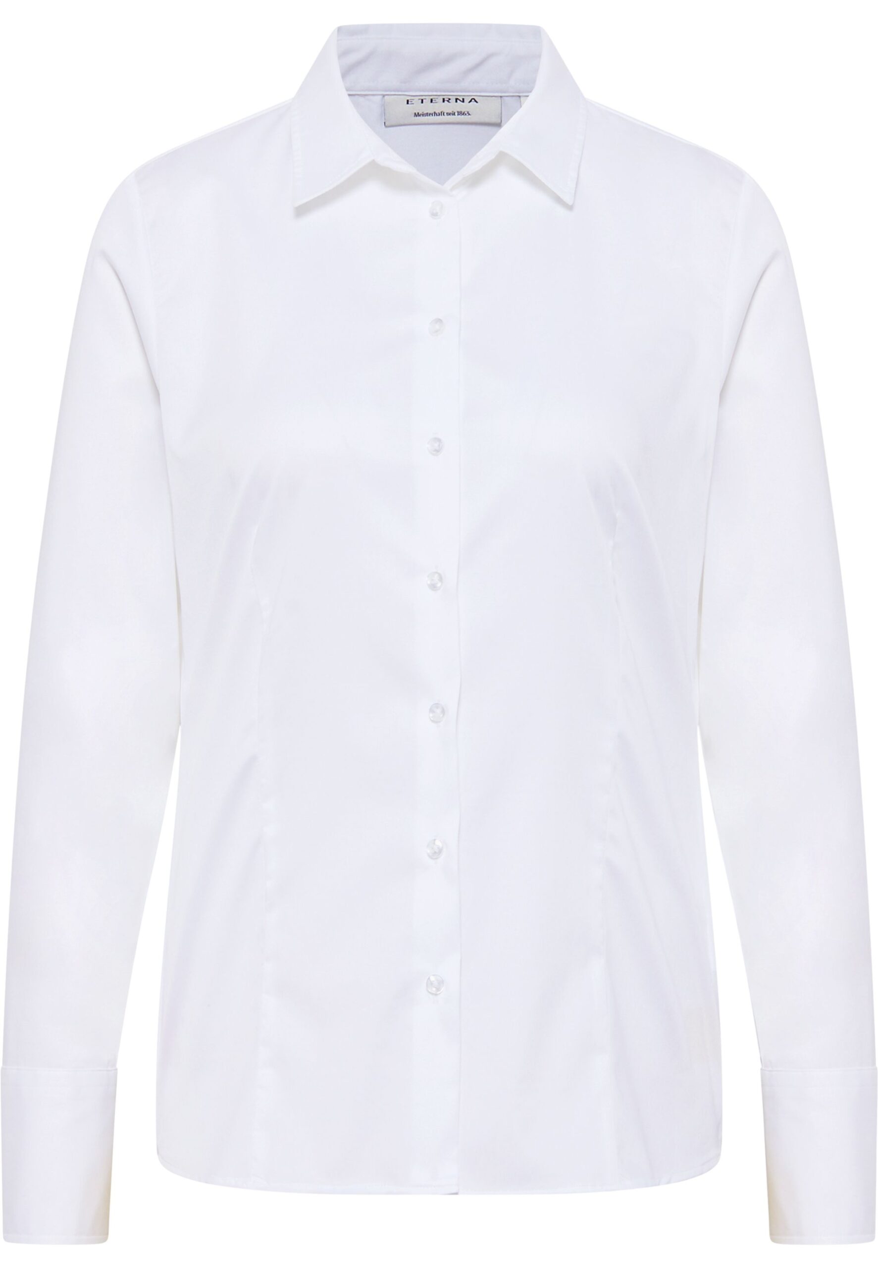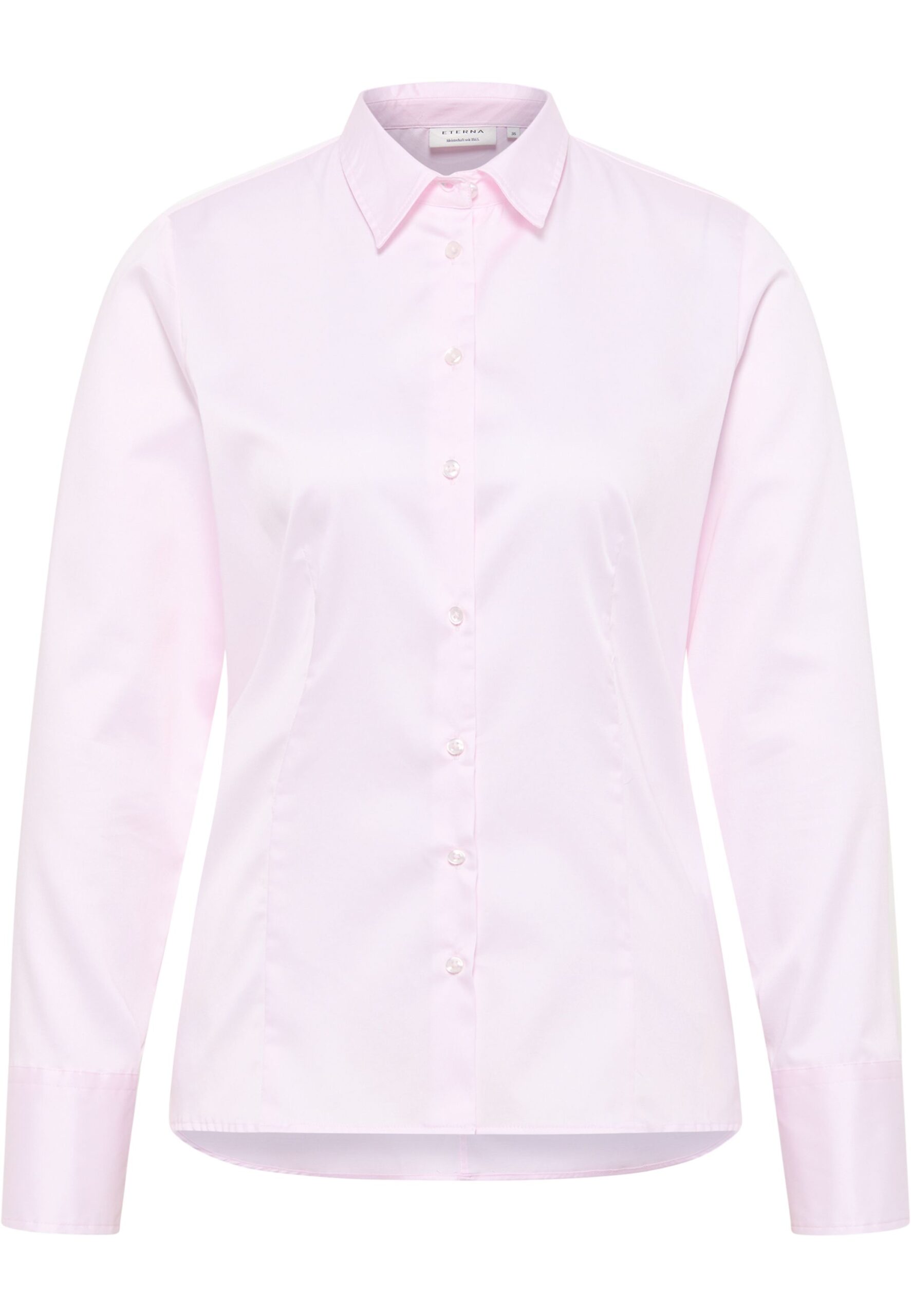 Geschmeidig und fein schimmernd – unser bügelleichtes SATIN SHIRT überzeugt durch schlichte Eleganz. Der Hemdkragen und die feine Baumwollqualität mit weichem Griff (95% Baumwolle, 5% Elasthan, Satingewebe), machen diese Bluse mit einer Rückenlänge von 66 cm zu einem absoluten Must-have für feminine Businesslook und stilvolle Momente. Diese REGULAR FIT Hemdbluse überzeugt durch ihren klassischen, passgenauen und körpernahen Schnitt. Die Silhouette wird durch Taillenabnäher betont. Der Super-Stretch-Anteil garantiert Ihnen Bewegungsfreiheit. Bestellen Sie diesen Klassiker noch heute Im ETERNA Online-Shop.
